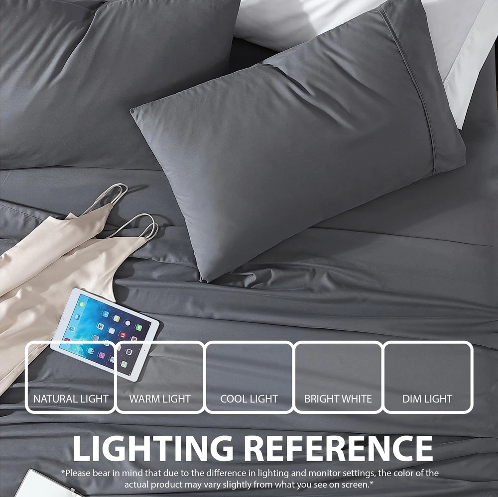 Composed of 100% polyester double brushed yarns for a crisp ironed look that is resistant and remain soft to the touch. Durable and long lasting, our ultra-thin sheet set comes in an array of neutral and vibrant colors that will not fade or shrink with every wash. You'll feel comfortable sleeping on them all night long. WHAT’S INCLUDED - Twin Set Includes: 1 Fitted Sheet 39" x 75", 1 Flat Sheet 66" x 96", 1 Pillowcase 20" x 30". WHY WE LOVE THESE SHEETS: Whether curling up with a good book or drifting off to dreamland, our sheet set will provide the perfect touch of relaxation and style to your sanctuary. These luxurious, durable sheets are crafted from 100% microfiber polyester and double brushed for amazing softness to pamper you all night long and for years to come. Available in a wide range of vibrant colors, you can add a pop of personality to your bedroom while enjoying blissful sleep. *Microfiber is an umbrella term for ultra-fine synthetic fibers that are commonly made from polyester and polyamide. *Please bear in mind that due to the difference in lighting and monitor settings, the color of the actual product may vary slightly from what you see on screen. EASY FIT - The fitted sheet is fully elasticized with extra strength elastic and can easily accommodate mattresses between 10" - 14” thickness for a snug fit. EASY CARE - and fade resistant, these sheets are machine washable - cold with like-colors - and quick drying for easy care. OEKO-TEX CERTIFIED - Tested and certified to be free from harmful chemicals, the sheets meet high safety standards.