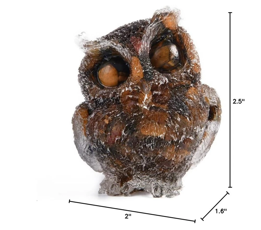 2.5" Owl Statue Natural Garnet Tumbled Stone Gemstone Owl Figurine Home Decor Product Details Color: Tiger Eye Brand: NUZUJX MPN: Does not apply UPC: Does not apply EAN: Does not apply Color: Tiger Eye Brand: NUZUJX Theme: Bird Material: Resin, Stone Cartoon Character: Bird,Owl Color: Tiger Eye Brand: NUZUJX Theme: Bird Material: Resin, Stone Cartoon Character: Bird,Owl Finish Type: Natural Collection Name: Bird Number of Items: 1 Product Dimensions: 2 x 1.6 x 2.5 inches Item Weight: 1.76 ounces Country of Origin: China Date First Available: September 27, 2022 Carved Owl statue is made of natural gemstones. Size: about:2.5 x 2 x 1.6 inch.It is not toy! This owl statue is so vivid and special. They are handmade with clear owl shape resin and filled with natural gemstones. You can see the gemstones from the bottom of the statue. Fits for all rooms, like living room, office, bedroom, bookshelves, wall shelves, window sill, desktop, coffee corner, etc. Box PackingWe put in a safe paper box, which can ensure that the items are not easily damaged during transportation and arrive intact. TIPS: Each ornament is individually hand-carved from natural stone so each one is completely unique in color and pattern due to the natural stone and the hand carving process; and stone may have gragn spot scratches.