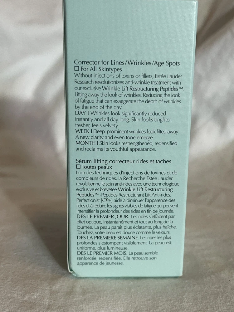 Brand: Estée Lauder Main Purpose: Firming, Lifting, Skin Firming Body Area: Face Size: Regular Skin Type: All Skin Types Type: Day & Night Treatment Department: Unisex Formulation: Serum Ingredients: Dimethicone, Silica Features: Contains Collagen Volume: 1.7 fl oz Product Line: Estee Lauder Perfectionist CP R Wrinkle
