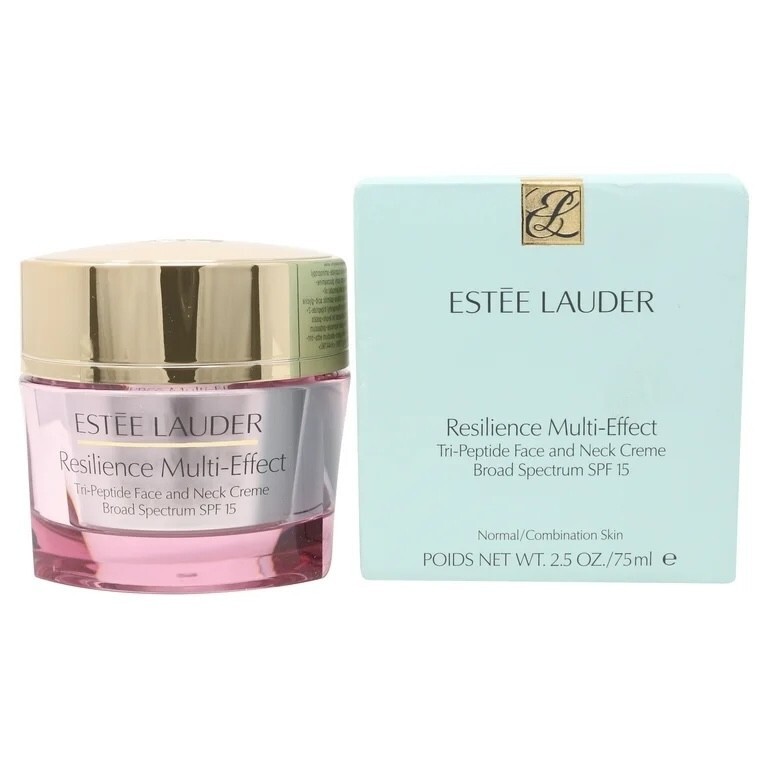 Estée Lauder Resilience Multi-Effect Tri-Peptide Face & Neck Cream Moisturizer with SPF 15 - Anti-Aging, Firming & Hydrating - 75mL | Clartiyandco Achieve radiant, youthful skin with Estée Lauder Resilience Multi-Effect Tri-Peptide Face & Neck Cream Moisturizer . This luxurious moisturizer is designed to nourish and hydrate, leaving your skin looking firmer, smoother, and more resilient. The powerful Tri-Peptide Complex works to reduce the appearance of fine lines and wrinkles, while the SPF 15 provides essential protection from harmful UV rays. Key Features: 75mL of Hydrating Moisturizer that provides intense hydration, leaving skin plump, supple, and radiant all day long. Tri-Peptide Complex : Targets multiple signs of aging, helping reduce the appearance of wrinkles and promoting smoother, firmer skin. SPF 15 Protection : Helps shield your skin from daily UV exposure, reducing the risk of sun damage. Anti-Aging Benefits : Helps restore youthful vitality, making your skin look and feel revitalized. For Face & Neck : Ideal for both the delicate face and neck areas, ensuring comprehensive skin care. Suitable for Adults : Perfect for individuals seeking a high-quality, all-in-one anti-aging moisturizer. Benefits: Radiant & Plumped Skin : Leaves your skin feeling nourished and revitalized, with a healthy glow. Wrinkles and Fine Lines : Visibly reduces the appearance of wrinkles for smoother, firmer skin. All-Day Hydration : Keeps your skin deeply moisturized from morning to night. SPF 15 Protection : Daily UV protection helps prevent future signs of aging caused by sun exposure. Suggested Use: AM : Apply all over your face and neck after your serum for lasting hydration and SPF protection. PM : For optimal results, pair with Estée Lauder Resilience Multi-Effect Night Cream for a complete 24-hour youth-infusing skincare routine. Why Choose Estée Lauder Resilience Multi-Effect Tri-Peptide Face & Neck Cream? Luxurious, Anti-Aging Formula : Combats the visible signs of aging while providing intense hydration. Perfect for Daily Use : Use it every morning and night to maintain youthful, firm, and radiant skin. Made by a Trusted Brand : Estée Lauder is known for high-quality skincare that delivers real, visible results. Get your Estée Lauder Resilience Multi-Effect Tri-Peptide Face & Neck Cream today from Clartiyandco and experience the ultimate in skincare luxury. Your skin deserves the best!