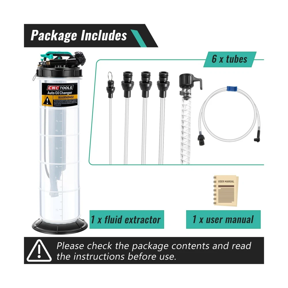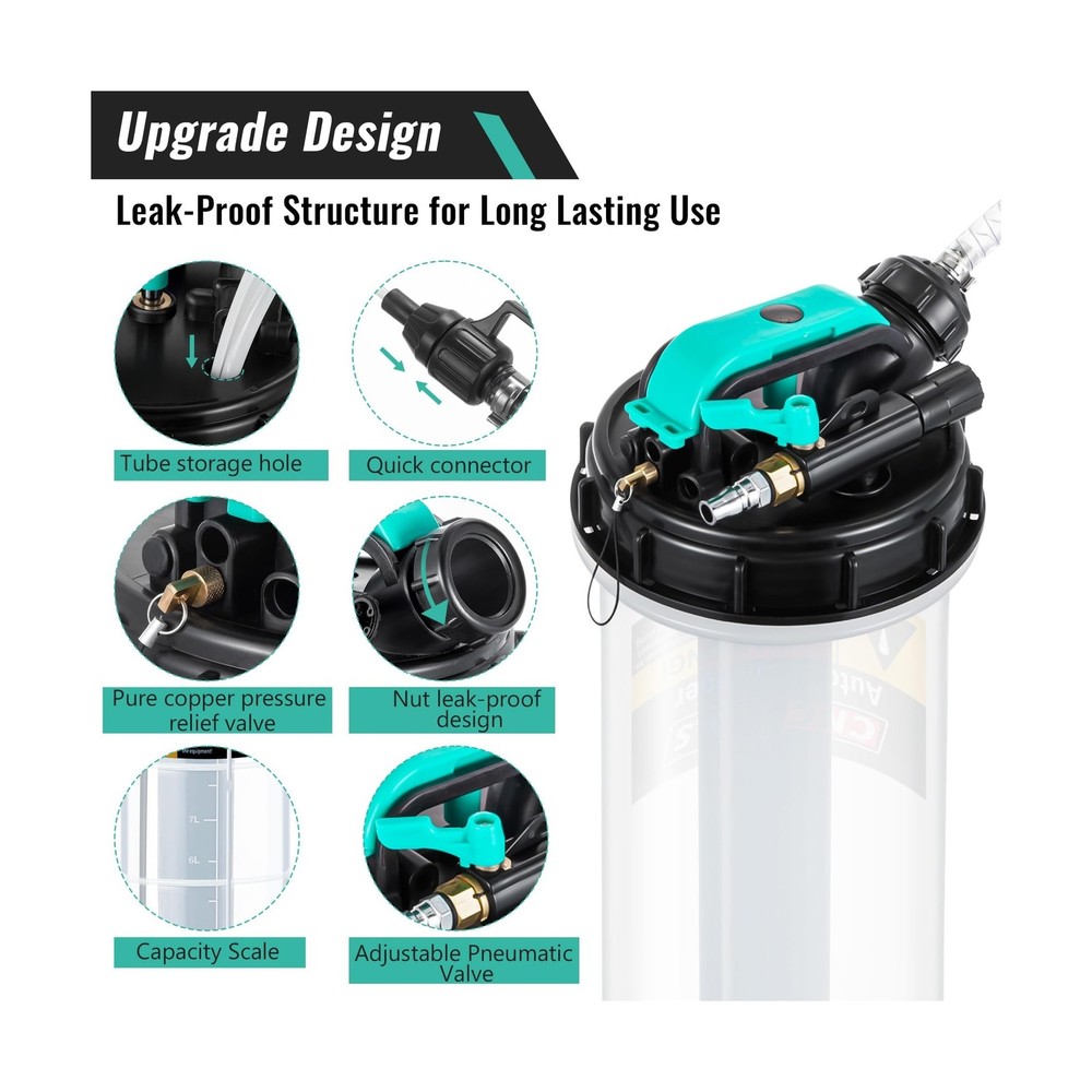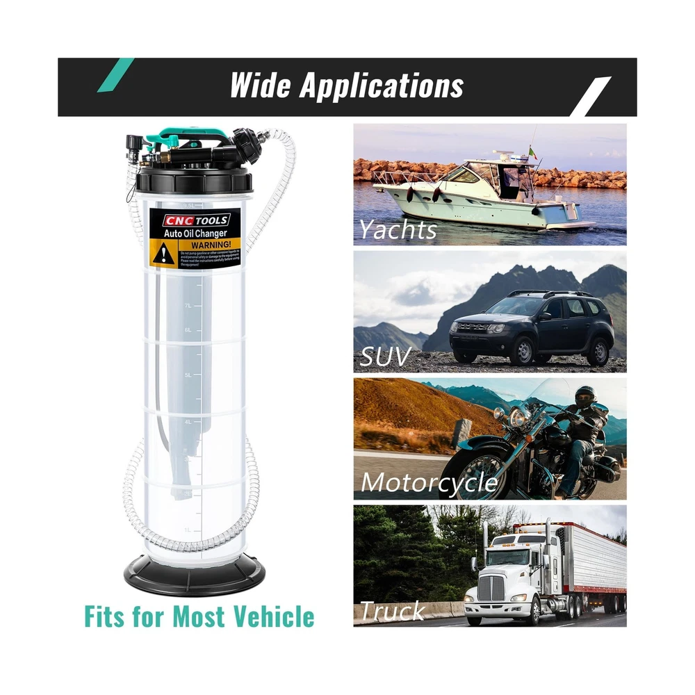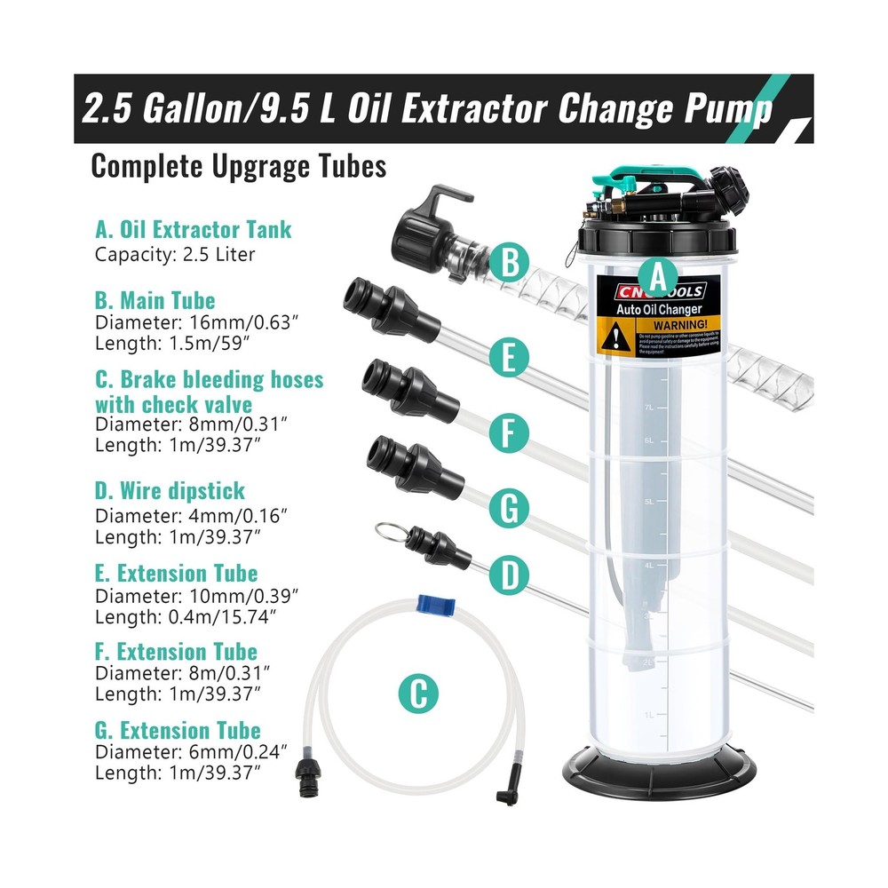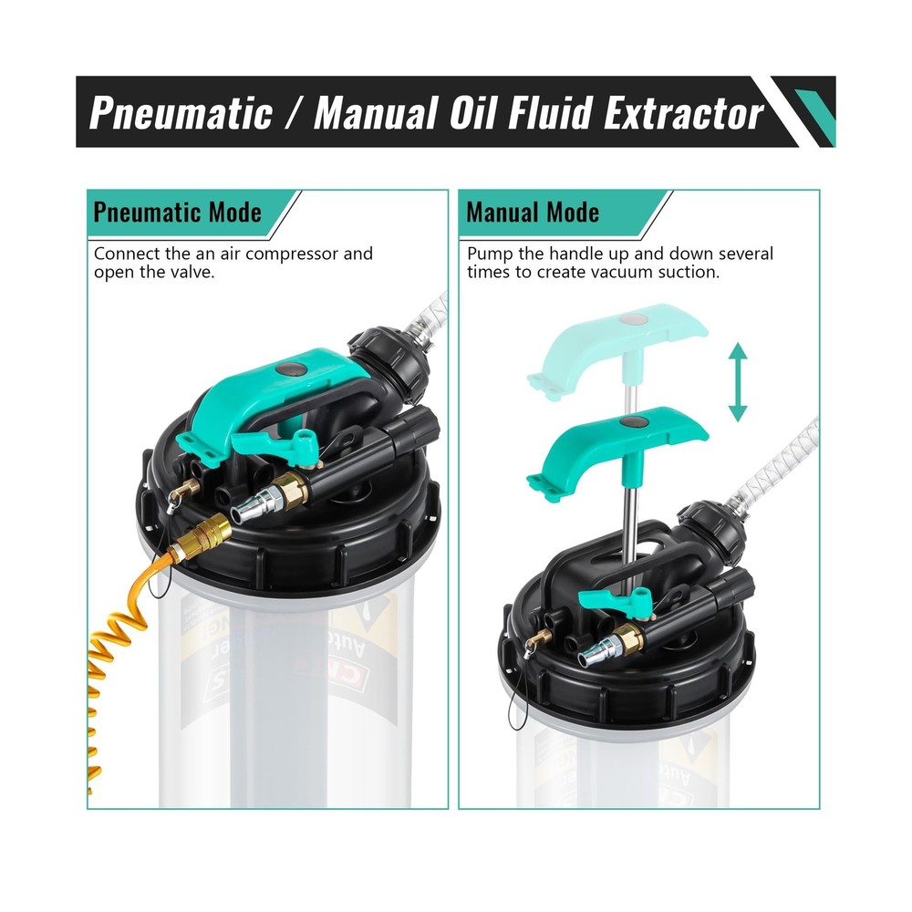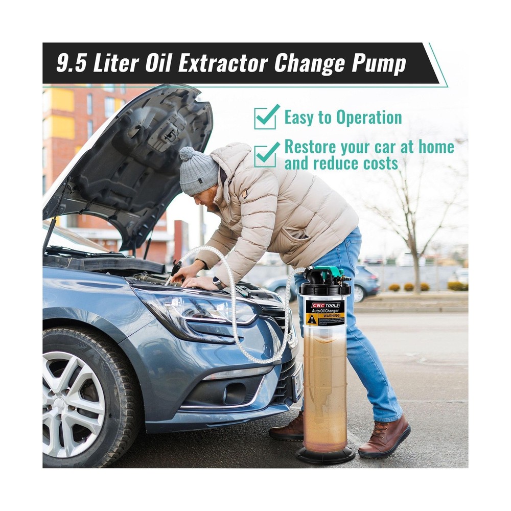 Estune 2.5 Gallon/9.5 L Manual Pneumatic Fluid Extractor, Automotive Oil Extractor Pump Oil Vacuum Changer with 5 Pcs Brake Bleeding Hose for Car, SUVs, Truck, Yachts Description Features: 2 Ways to Extract Oilthe oil extractor supports 2 ways to refine oil, manual and automatic, the automatic vacuum mode can connect air compressor to extract oil quickly in few minutes, and manual mode simply extract the handle up and down about 11 times 2.5 Gallon Large Capacityextra large capacity extractor with comfort handle lets you lift easily and draw low viscosity fluids such as water or coolant with ease No Oil Leftfast connect the 5 feet main hose to the extended PU hose and brake bleeding hose to easily insert the hose into the bottom of the gas oli; All connections are docked by sealed joints to avoid oil leakage Wide Applicationsthe fluid extractor pump can be applied in many applications, such as cars, yachts, RVs, trucks, etc.; This brake fluid extractor can quickly and easily extract oil, saving time and effort, which is a necessary tool for self help car maintenance Package Includes1 x fluid extractor, 6 x tubes, 1 x user manual; Warm Reminder: Before extracting the oil, please let the engine warm up for 5 minutes to make the oil mix well, and then make sure the oil hose touches the bottom before extracting Product Details: Manufacturer: ‎Estune Brand: ‎Estune Item Weight: ‎8.33 pounds Product Dimensions: ‎29.13 x 9.06 x 8.86 inches Item model number: ‎LAN-Estune-1865 Manufacturer Part Number: ‎Estune-Gallon-5567 Date First Available: April 2, 2024 Delivery We Do Not Ship Outside of the Continental US. Return Policy All items qualify for returns within 30 days of receipt. Seller is responsible for return shipping on any item that is not damaged. Feedback We take our reputation seriously, we buy and sell online, so we understand the value of trust. If you are unsatisfied with your order, please contact us and we will work with you to resolve it to your satisfaction.
