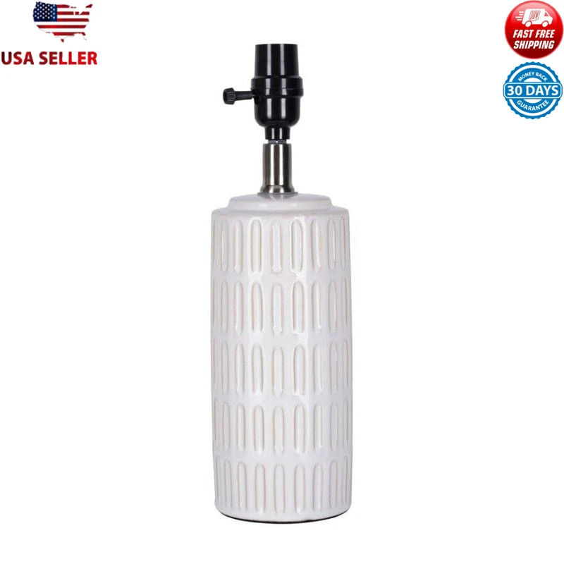 Introducing the Better Homes & Gardens 13. 5" Etched Ceramic Accent Lamp Base, Neutral 2-Tone. This accent lamp base is an elegant and sophisticated addition to your home décor. The detailed texture and elevated design bring a classic yet transitional design element to your home. This lamp is fitted with a 60-inch black power cord and a 2-way rotary switch on the socket. Complete your lamp with your selected shade style, any shade using an uno fitter will work! Whether used in a living room, on accent tables, in your entry way or as a pair of bedside nightstand lamps, this table lamp offers the perfect balance of classic style and ambiance! Better Homes & Gardens neutral tone-on-tone ceramic accent lamp base with high-gloss finish Assembled Dimensions: 3. 75"L x 3. 75"W x 13.5''H