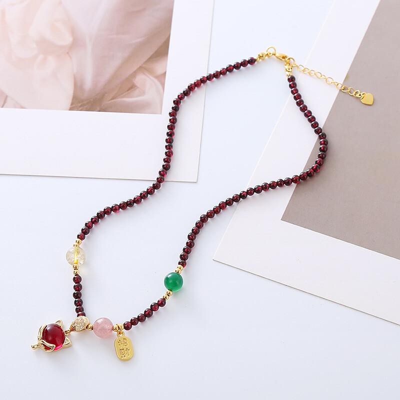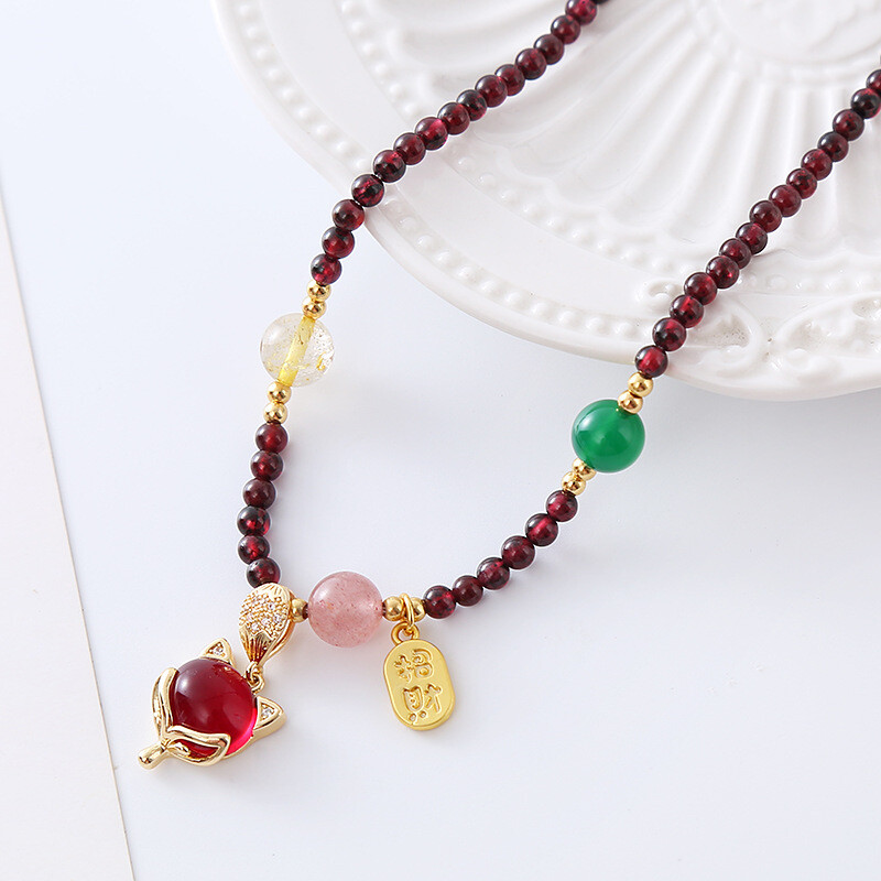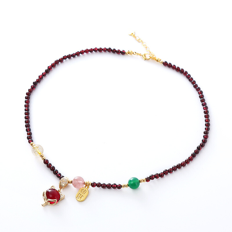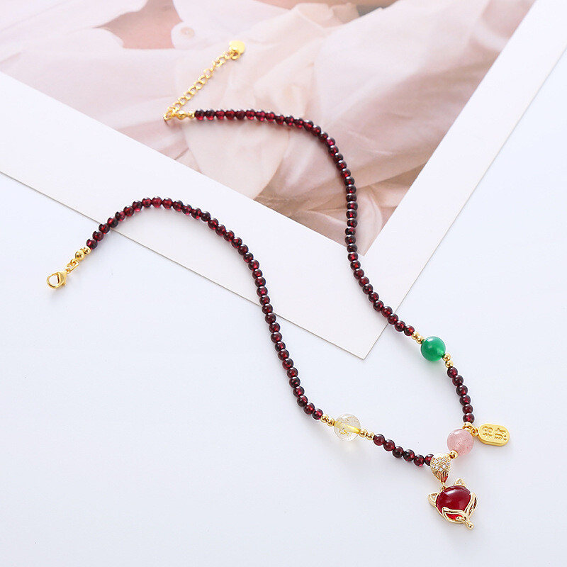 Tiger Eye Geometric Prismatic Crystal Fox Necklace Chain