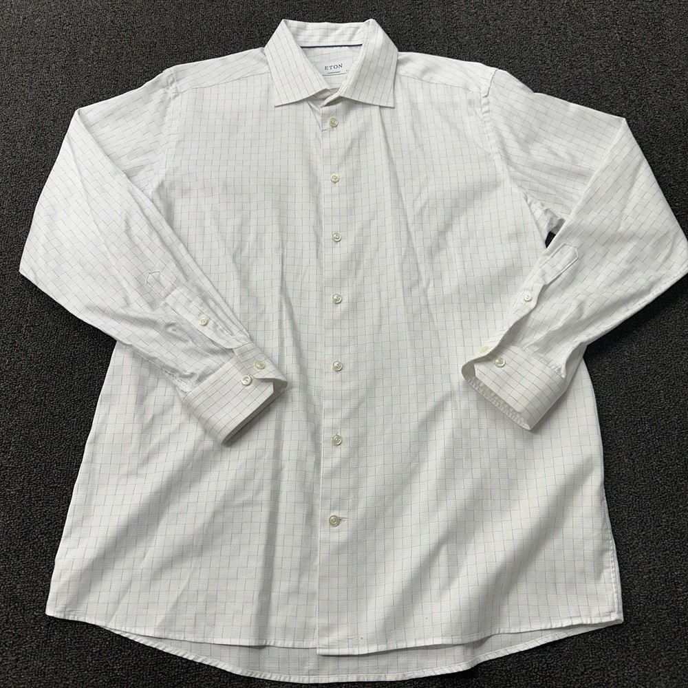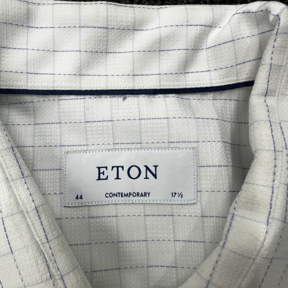 Eton Dress Shirt Mens 17.5 44 Blue Check Contemporary Button Up Signature Twill