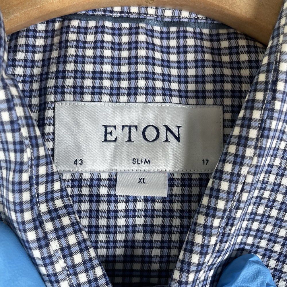 Eton Dress Shirt Men’s Size XL Slim Fit Checkered Blue 43-17 Long Sleeve Preppy Multiple flaws found, please see pictures for details. 6