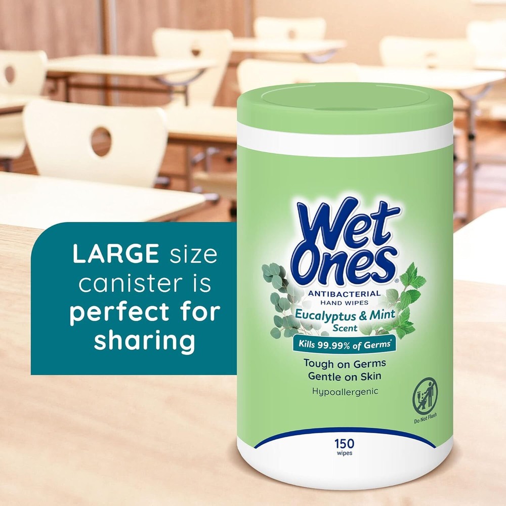 Eucalyptus & Mint Hand Wipes, Canister| Antibacterial Wipes,
