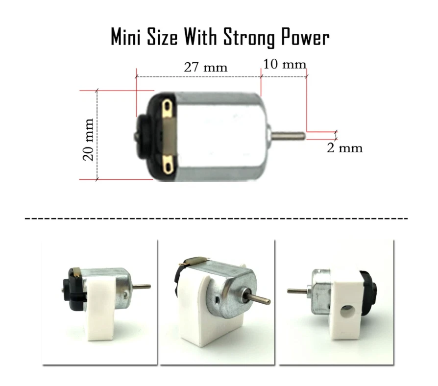 Get creative with the EUDAX 6 Set Small DC Motor Kit , a versatile and high-performance set ideal for hobbyists, DIY enthusiasts, and makers. This kit includes 6 mini electric motors that run on 1.5V to 3V , with speeds up to 24000 RPM , providing the perfect solution for a wide range of DIY projects, toys, models, and electronics. Whether you’re building a custom toy, robotic project, or just experimenting with small electronics, this kit has everything you need to get started! Key Features: High-Speed Mini DC Motors: Each motor operates at a 1.5V-3V voltage range, providing impressive speeds of up to 24000 RPM . These motors are perfect for small DIY projects, including toys, robots, and other electronic creations. Complete DIY Kit: The set includes 6 motors , 2 AA battery holder cases , motor brackets , a rocker switch , and 12 pieces of 25cm electronic wires , giving you all the essential components to power and control your motors in various applications. Easy to Assemble: This kit provides everything you need for easy assembly and integration into your projects. The motor brackets make it simple to securely attach the motors, while the battery holder case and wires ensure convenient power connections. Wide Application: Perfect for DIY toys , robotics projects , model making , small machines , and other electronic experiments. Whether you’re teaching electronics to students or creating fun, hands-on projects, this kit is the ideal choice. Versatile Voltage Range: The motors are compatible with a wide range of voltage inputs from 1.5V to 3V , allowing you to experiment with different power sources like AA batteries or other low-voltage power supplies. Rocker Switch for Easy Control: The included rocker switch allows you to easily control the on/off function of your motor, making it simple to start and stop your projects with ease. Why Choose the EUDAX Small DC Motor Kit? Complete Starter Kit: This all-in-one kit gives you all the necessary parts, including motors, battery holders, switches, and wires, so you can jump straight into your DIY projects without needing additional components. High-Speed and Reliable Performance: With motors running at up to 24000 RPM , you get fast and reliable performance for various small projects and experiments. Perfect for Hobbyists & Educators: Whether you're a hobbyist looking to explore motor-powered projects or an educator teaching students about basic electronics and motors, this kit is a great hands-on tool for learning and creativity. Take your DIY projects to the next level with the EUDAX 6 Set Small DC Motor Kit . Perfect for toys , robotics , and other fun DIY creations, this kit provides high-speed motors, essential accessories, and all the components needed to power your projects with ease. Start building your next innovation today! SHİPPİNG & RETURN FREE Shipping on all orders. Orders are shipped within 1-2 business days after payment confirmation. For 95% of our items, we offer express shipping services (receive your item within 1-5 business days). In rare cases, delivery times may be slightly extended due to unforeseen circumstances. For delivery status updates, feel free to contact us anytime — we respond as quickly as possible. 30-Day Return Policy: You can return your item within 30 business days.