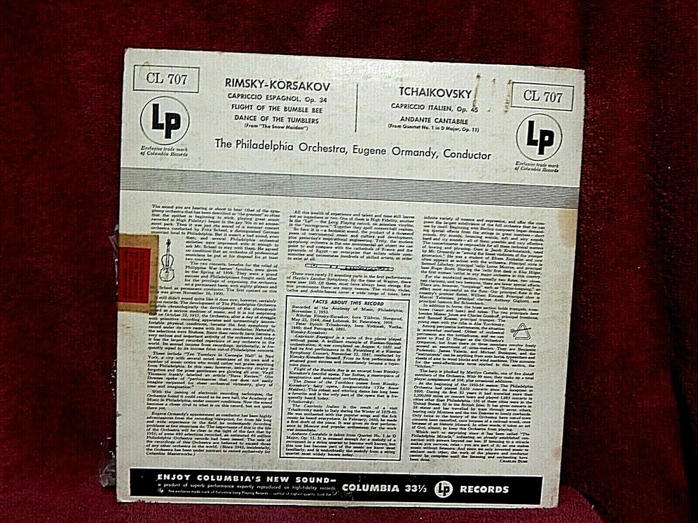 WYSIWYG.......one Eugene Ormandy Capriccio LP PLAY TESTED . This record is in great shape. It was play tested from start to finish (on a cheap, manual, unbranded record player I got for twenty bucks new off the internet), from beginning to end. The record sounds great with no skips or jumps. My best guess (see grading info below) is Jacket=VG+ Sleeve=VG(plastic) Record=VG+ P lease take a close look at all of the pics and read the info in the listing details before purchasing this item, as it constitutes your agreement to them. WARNING--Do you want the best for your money? Ask yourself why the other sellers don't show you the album from ALL angles, including the cover, dust jacket, and vinyl. With my listings, you really know what you get due to all of the pics. NOTE: I have ZERO experience grading or selling records, but since eBay asks for a grade, I make my best guess. If it is factory sealed, then obviously the record and inner jacket are MINT. If I see anything else that stands out, I will tell you in the listing details &/or condition details. I also have ZERO experience or knowledge of how to clean records. So, out of fear of damaging the records, I have NOT cleaned them. There may be dust &/or finger prints. This album HAS been PLAY TESTED from start to finish on both sides. It plays through with no skips or jumps . SHIPPING SPECIAL Buy one and up to 5 more ship for free (of course, you still have to pay for the record). Make sure to wait for an adjusted invoice before paying. For a more organized look at my listings or to see all of the other great finds, please visit my store at: https://www.ebay.com/str/4luvofdeals All Items are sold as is. Please take a look at the photos carefully, so there are no surprises. If I see a flaw, I will tell you in the listing details. Shipping is via USPS within the United States, and all other places will pay international rates. International shipping will have a fee to help cover costs of enhanced packaging. Domestic shipping will be via 1st class or priority mail, depending on weight. My son will be using the money to help pay his college expenses. Please be generous, and remember to bid big and bid often. Please make me a favorite seller so you can see all of my other deals. I will be listing more over the next several months. International bidders : eBay often miscalculates international shipping rates. If the cost seems ridiculously high or low, please verify the cost with me before bidding . If eBay under estimates the rate and you buy it, you will have to pay the difference before I can ship it. If eBay over estimates shipping, I will refund the difference. You are protected by eBay's return policy, and I describe items as accurately as possible. Please contact me before leaving negative feedback and I will do what I can to resolve any problems. Please make payment within two days and by Pay-pal, I am an honest seller and want to ensure a pleasant easy transaction for both of us.