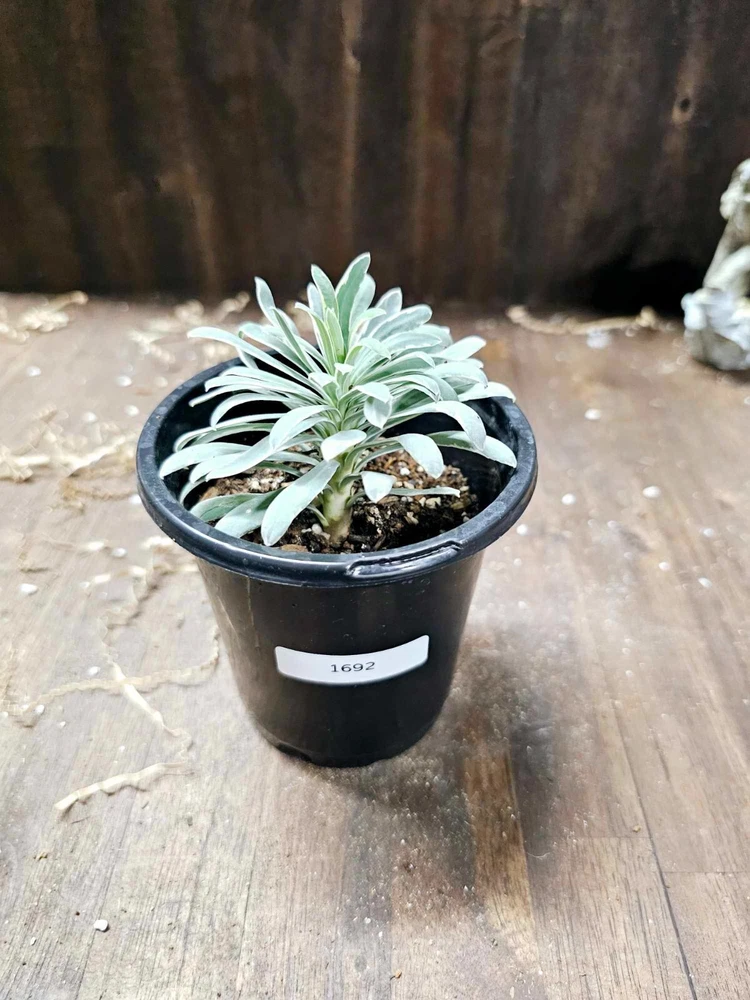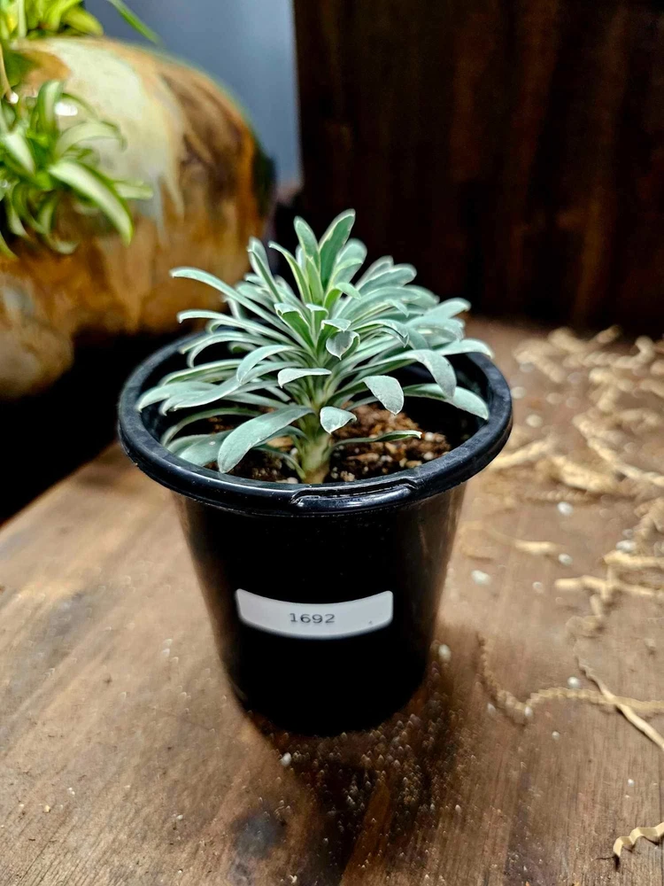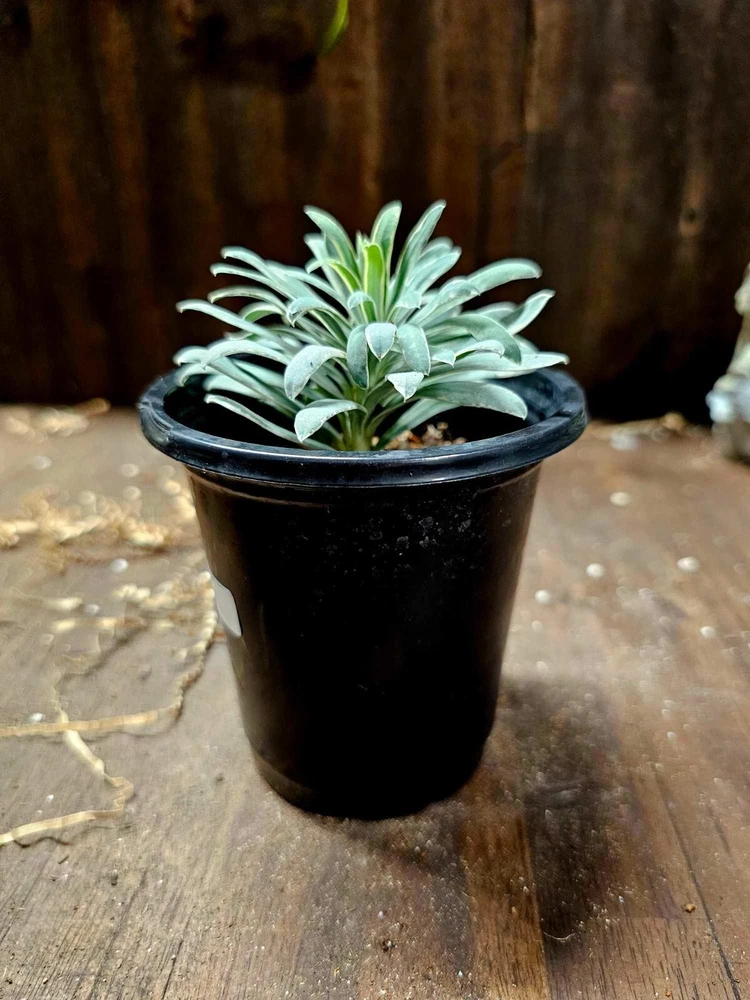 Euphorbia 'Glacier Blue' in a 4" Pot - Actual Item - CLEARANCE SALE ! 1692 Euphorbia 'Glacier Blue' is a striking and elegant succulent known for its bluish-gray leaves edged with creamy white margins. This plant has a compact, upright growth habit, making it an excellent choice for both indoor and outdoor collections. Light : Prefers bright, indirect light to full sun Watering : Allow soil to dry between waterings; drought-tolerant Soil : Well-draining cactus or succulent mix As-Is / Actual Item: Please take a moment to carefully review the provided pictures, as they form an integral part of the item?s description. Be aware that the item?s appearance may vary due to shipping conditions or changes over time if not sold immediately. Additionally, the price may be adjusted at any time to reflect the current condition of the item while it remains in our care. We appreciate your understanding. Returns: If you need to return an item, we kindly ask that you reach out to us first. We?re committed to resolving any issues you might face. In the event that your purchase is defective or damaged, please notify us immediately. For all other returns, items must be in unused condition, with original packaging intact and in a resalable state. These returns must be made within 30 days of receipt. The purchase price will be refunded using the same method as the original payment. Shop with confidence and thank you for choosing us for your shopping needs! We appreciate your business.