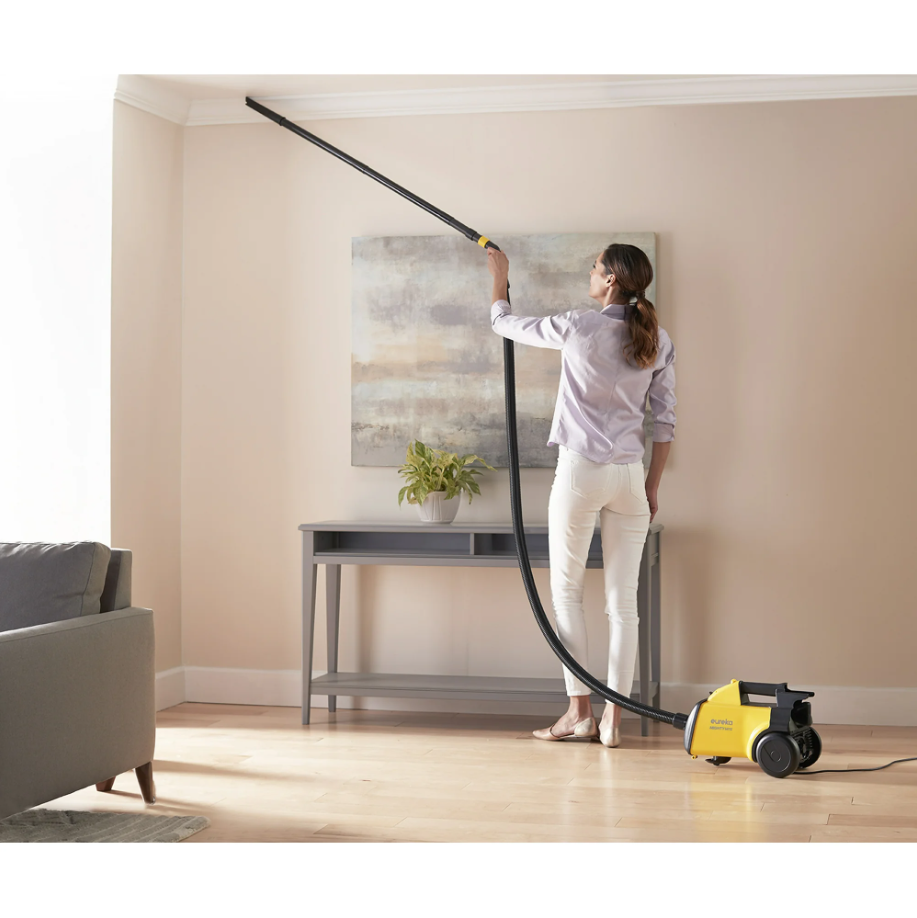 If you want shiny, spotless wood and tile floors, you’ll love using the Eureka 3670G Mighty Mite canister vacuum. This lightweight and portable canister vacuum features a 12-amp motor. That means you’ll have powerful suction at your disposal that easily removes tiny particles. This sleek and versatile Eureka model works effectively on both hard surfaces and carpet. Extra attachments help you clean those trouble spots such as cracks, crevices, and small spaces between baseboards and floors. The handy extension tools also work great when you want to get the cobwebs off of your ceiling. One of the features that people love about this state-of-the-art canister vacuum is that it is especially easy to use on stairs. This is due to the fact that it is so lightweight and simple to maneuver. Elderly people, teens, and even children will enjoy helping out around the house with this efficient machine. This Eureka Mighty Might vacuum cleaner will pick up those stubborn pet hairs that your furry friends leave on upholstery. Simply use the handy, effective upholstery nozzle to clean sofas, chairs, and rugs. The extensions are made from a thick plastic. The wand that holds the turbo nozzle in place is made out of sturdy metal. For such a light machine, this model is extremely durable. As with all canister vacuums, it's important to regularly change the bag in order to achieve optimal cleaning results. All of the bags in the MM series of bags should fit the Eureka Mighty Mite 3670G. It is also important to periodically check the filter on this model as well. Whether you're cleaning hardwood, carpets, linoleum, tile, or bare concrete, the 12-pound Eureka Mighty Mite 3670G canister vacuum is ideal. This machine also works wonders on your car upholstery, and it's light enough to easily maneuver throughout your vehicle. The extensive 20 foot power cord is especially helpful when you're covering a large area of floor space. The crush-resistant hose can stand the test of time. The surprisingly strong power of the blower and suction mechanism is impressive, especially for such a lightweight vacuum. For those unexpected spills when you're working on projects with your kids, Mighty Mite will work beautifully. For your regular day-to-day household messes, you'll find that this helpful vacuum consistently gets the job done right. Cleaning up your office, basement, or garage is a breeze with this powerful yet portable machine. These vacuums are designed to be used upright for picking up dust and debris. They can also be used for comprehensive general cleaning by inserting the different accessories that attach to them. Whether you're dealing with large or small messes, this vacuum cleaner will provide consistent results. This type of cleaner is easy to store, even in a small closet. It's a perfect tool for tough messes, regular daily use, or touch up jobs.