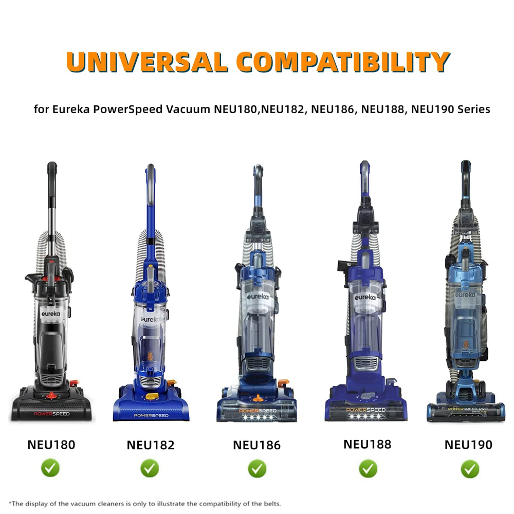 Replacement Belts for Eureka Powerspeed Vacuum Part E0205, Pack of 2 [[IMAGE]] Hello, We Do Sell Mobiles, Computers Tablets & Network Accessories! Features Broad Compatibility - These Belts are compatible with Eureka PowerSpeed Lightweight Vacuum, Fits Model NEU180, NEU181, NEU182, NEU182A, NEU186, NEU188, NEU188A, NEU190, NEU192, NUE195, NEU202, NEU203, NEU280 Series. Customized Made - Made of eco-friendly rubber, durable and flexible, long-lasting reliability, making vacuuming more powerfully. Easy to Replace - Simply remove the damaged belt from your vacuum head and replace this new drive belt in the original position, bring your vacuum cleaner back to life! Warm Tips - Replace your vacuum cleaner belts every 3 to 9 months to ensure optimum performance of your vacuum cleaner. What You Get - Each package contains 2 Replacement Belts E0205 for Eureka PowerSpeed Upright Vacuum. Product Description About JEDELEOS: JEDELEOS was founded to provide everyone with the vacuum accessories you need and we specialized in developing and manufacturing various kinds of replacement parts for meeting your need! We welcome you and thank you for your support! JEDELEOS High-quality Replacement Flat Belts for Eureka PowerSpeed Upright Vacuum NEU180/NEU182/NEU186/NEU188/NEU190 Wide Compatibility - Perfectly Fit for Eureka PowerSpeed Vacuum, Fits Model NEU180, NEU181, NEU182, NEU182A, NEU186, NEU188, NEU188A, NEU190, NEU192, NUE195, NEU202, NEU203, NEU280 Series. Easy to install - Simply remove your broken belt and replace the new one, then reactivate your vacuum cleaner. Premium Quality - Made of high-quality rubber, durable and flexible, long-lasting reliability. Packing List - Each package comes with 2-Pcs Brand-new Belts. Premium Belt Each Belt is made of high-quality rubber, durable and flexible, long lasting reliability. Standard Size The same belt size as the original (Replace Part E0205), convenient to replace and install. 2-Belt Included We suggest to replace the belt every 3 to 9 months to ensure the performance of vacuum, the 2-Belt design can be easy for you to replace it, order once, last throughout the year. Specifications Brand JEDELEOS Belt Type Flat Belt Material Premium Rubber Color Black Quantity 2 Pcs Compatiblity for Eureka PowerSpeed Lightweight Vacuum NEU180, NEU181, NEU182, NEU182A, NEU186, NEU188, NEU188A, NEU190, NEU192, NUE195, NEU202, NEU203, NEU280 Series. Number of Items 2 Belt Style Flat Belt Material Rubber Country of Origin China Compatible Devices function(f) {var _np=(window.P._namespace("DetailPageProductOverviewTemplatesJava"));if(_np.guardFatal){_np.guardFatal(f)(_np);}else{f(_np);}}(function(P) { P.when('A').execute(function(A){ A.on('a:truncate:po-attribute-truncate-3:updated', function(data) { var isTruncated = !data.truncateInstance.getIfTextFits(); var seeMoreElement = document.getElementById('po-attribute-see-more-id-3'); if(seeMoreElement) { seeMoreElement.style.display = isTruncated ? '' : 'none'; } }) }); })); for Eureka PowerSpeed Vacuum NEU180, NEU182, NEU182A, NEU182B, NEU186, NEU188, NEU188A, NEU190, NEU192, NEU202 See more Item Weight 25 Grams Package Dimensions 4.25 x 3.19 x 0.67 inches; 0.88 ounces 3.19 inches x 4.25 inches x 0.67 inches. Weight: 25.0 grams Payment We accept all payments via Ebay using Credit Cards , PAYPAL , Apple Pay and many others Shipping We are always working hard to ensure your package arrives as soon as possible. Please understand that some factors like weather, high postal traffic, and the performance of shipping companies are outside of our control. Delivery & Return Policy We offer a 30-Day Return Policy on items in which you are not completely satisfied with. You have the option of a full-refund or an exchange of the item. No returns are available on items shipped outside of the USA.