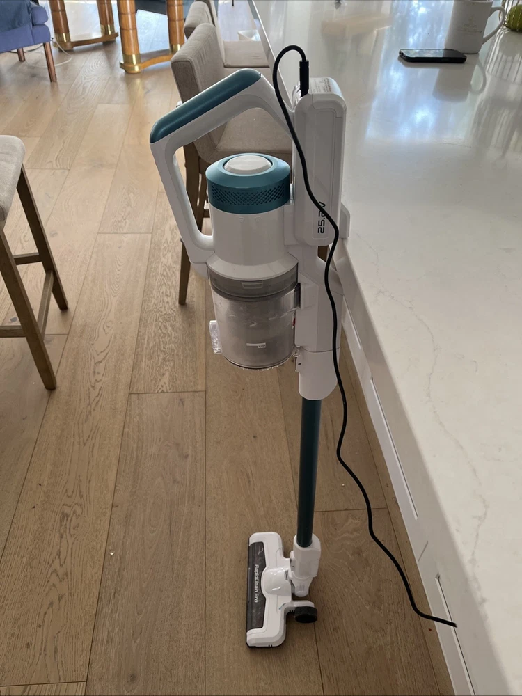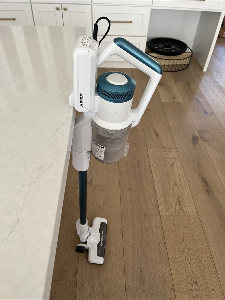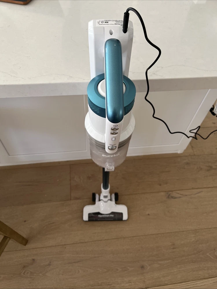 This Eureka RapidClean Pro Blue Stick Vacuum Cleaner is the perfect solution for quick cleanups around the house. With a powerful suction and a bagless design, you can easily clean carpets, hardwood floors, and upholstery. The vacuum has a runtime of 40 minutes and a capacity of 0.7L, making it perfect for small to medium-sized homes. The Eureka RapidClean Pro comes in a stylish white and blue color and can be easily stored away when not in use. The vacuum is lightweight and has a wall-mounted feature for added convenience. This stick vacuum cleaner is perfect for those who want a reliable and efficient cleaning solution without the hassle of cords. USED WORKS GREAT !!