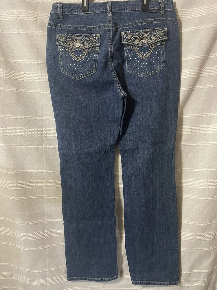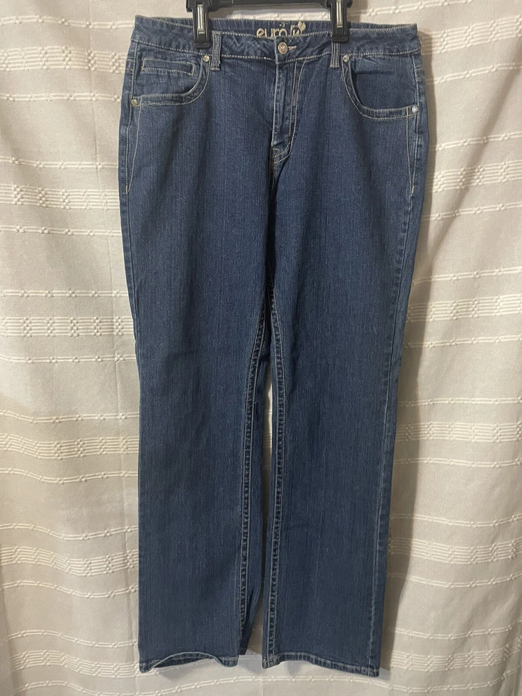 Euro Blue Denim Jean Women Sz 14 Great Condition 18.00. This pair of jeans is a must-have for any fashion-forward woman. The solid blue color and USA-themed accents make it perfect for a casual day out or a night on the town. The 5-pocket design with button and zipper closure ensures that your belongings are safe and secure. The spandex and cotton material with a denim fabric wash provides a comfortable and stretchy fit, while the mid-rise and regular fit make it flattering for all body types. The distressed and vintage-free design with a cowboy-inspired theme makes it a versatile addition to any wardrobe. Machine washable and made in China, these jeans are perfect for any season. Great condition- Smoke free home- Thanks for stopping in check out my online thrift stuff added daily much love Shelly J đź’š