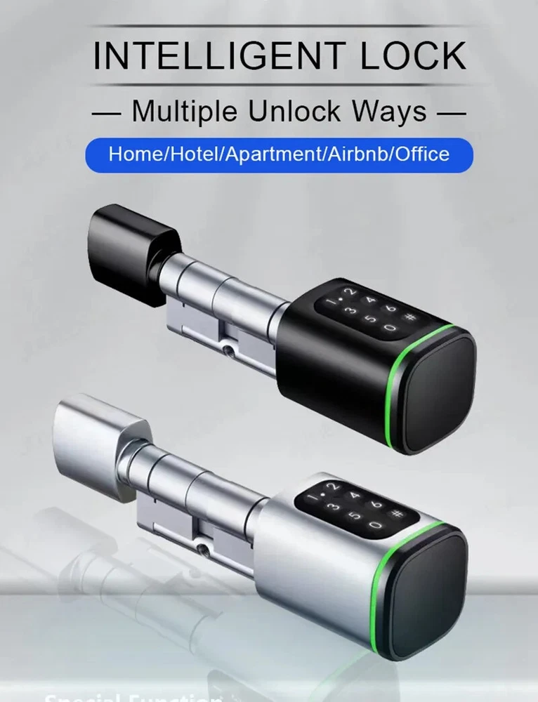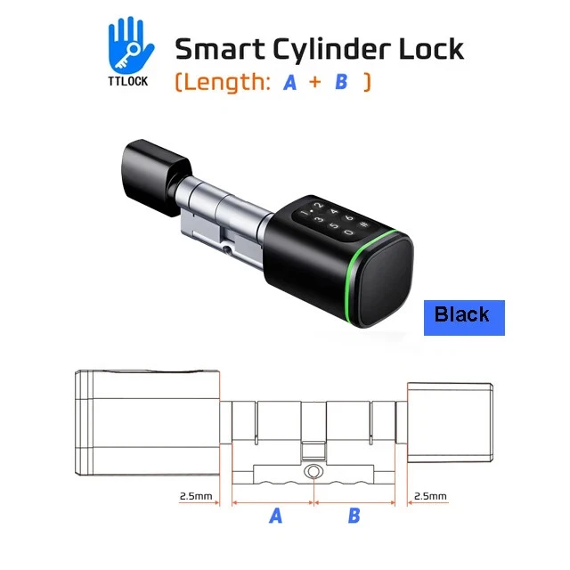 Euro Door Smart Cylinder Lock Tuya Bluetooth APP Digital Password Card Mechanicak Key TTlock Unlock Home Electronic Smart Lock Core Specification Material: 304 stainless steel + Aluminum + Plastic Color: Black, Silver 4 Unlock Ways: Password, Card, Metal Key, Tuya App ( Bluetooth ), TTlock App Lock Cylinder Size: 60mm, 70mm, 80mm, 90mm, 100mm,110mm Door Thickness: 60-110 mm Power Supply: Powered by 1pc CR123A battery ( Not included, customer should buy themself ) Emergency Power Supply: With Micro Type-C USB Charging Supported by Tuya App Tuya App is an smart lock app, its multiple functions always satisfy your requirements ● Manage fingerprint, card,APP user ● View access logs ● Check alarm and unlock record ● The language of the APP follows the mobile phone system ..etc. ● Tuya options with gateway , The smart lock can connect to WiFi. TT lock APP Functions: 1.The lock connect with the phone by Bluetooth. 2.Send temporary/ekey password remotely 3.You can open the lock / manage the lock (add user / delete user / set password and so on) 4.Add a G2 gateway if WiFi connection is required (Gateway buy extra)Connect Alexa through G2 gateway Gateway Connection method The lock can be connected directly with the bluetooth of the mobile phone The gateway can make it connect to wifi and compatible with Alexa and Google home ● Order TT Lock options with gateway G2. The smart lock can connect to WiFi and control by intelligent voice system with other smart home devices to achieve smart home. Details and Batteries This cylinder lock is an advanced smart lock offering Airbnb integration and high-tech automated features. The automatic lock feature can adjust the time for the ultimate security setting. The long life battery ensures the quality utilizing. ◆ How to judge whether it is suitable 1. The lock cylinder type is the same, 2. The size of the lock cylinder is the same or smaller How To Install? ●Simply use a screwdriver to install in 3 minutes ●No breaking the door or change the door body Packing Included Smart Cylinder Lock x1 Smart IC Card x 2 Mechanical Key x 2 Use Manual x1 Screw Bag x1 If you have many family numbers, and want more IC cards, pls Contact us freely!