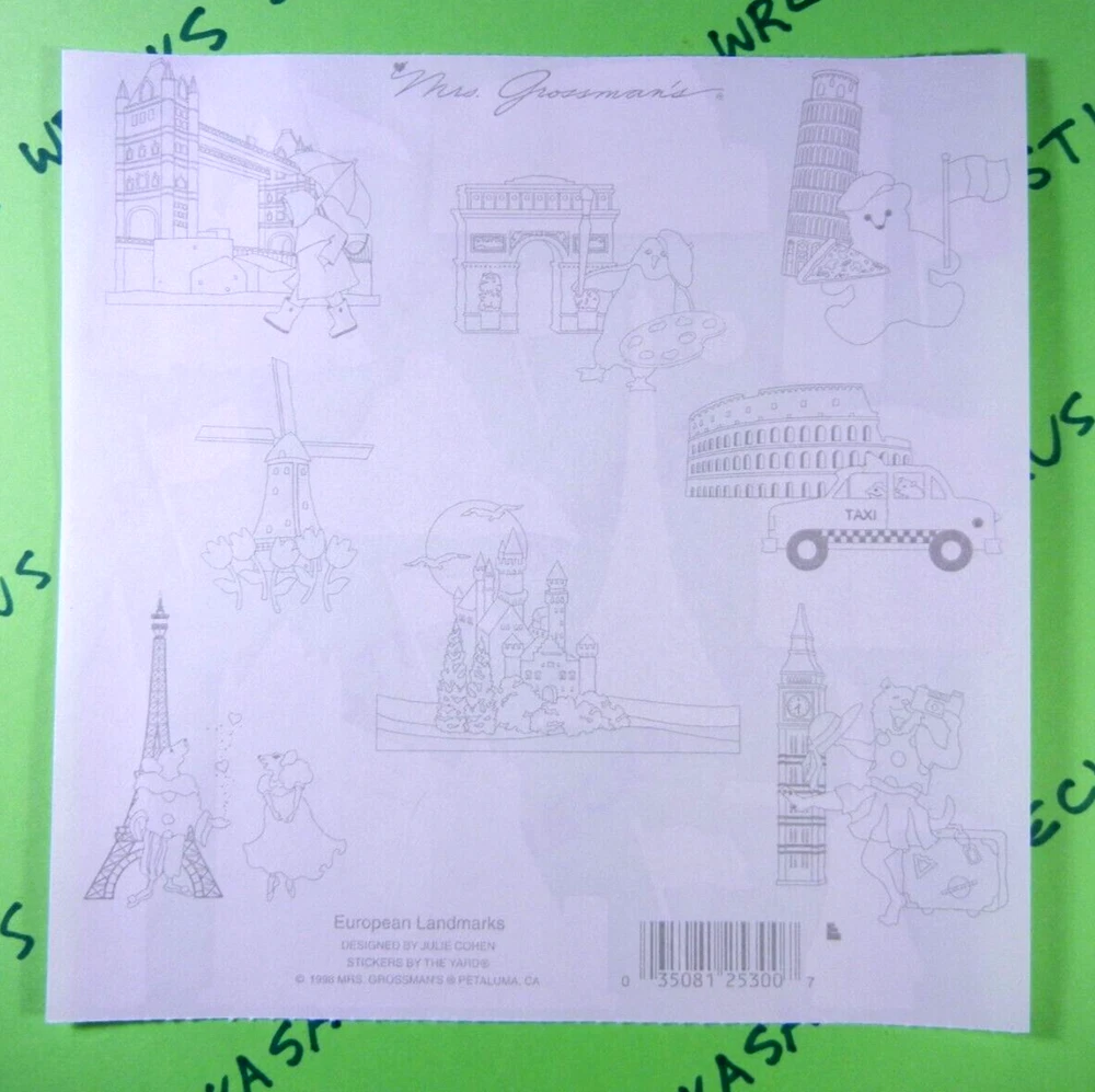 Sticker Sheet Is Vintage New. Sticker Brand Is Mrs. Grossman's. Sticker Sheet Is 6" x 6". Sticker Theme Is European Landmarks. When Purchasing Multiple Sticker Sheets Or Packs Please Add All Items To Cart Before Purchase So That Your Purchase Combines Down To Base Shipping Price. All items are shipped WITHOUT tracking in an envelope with cardstock.