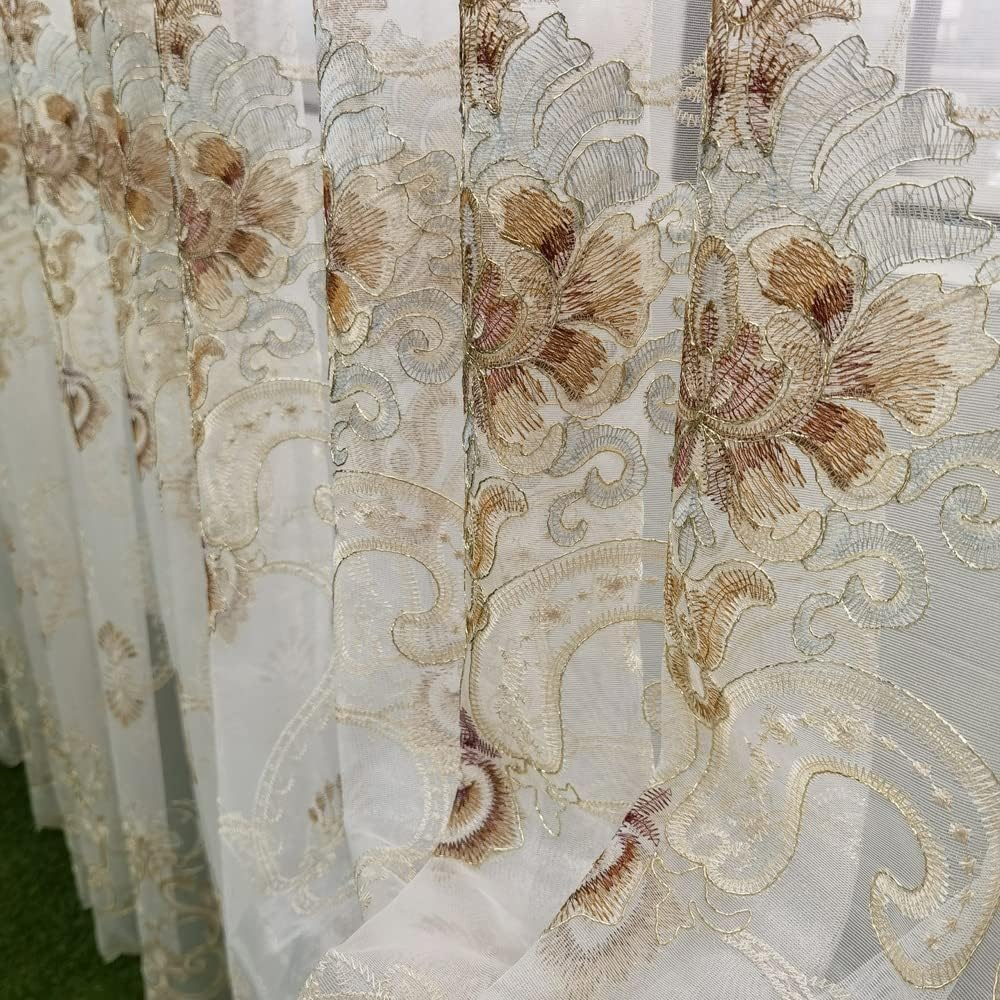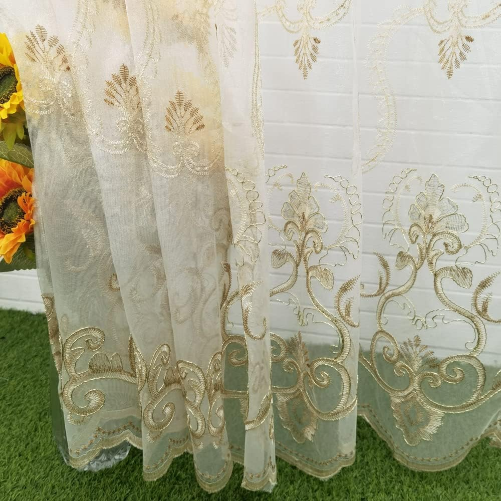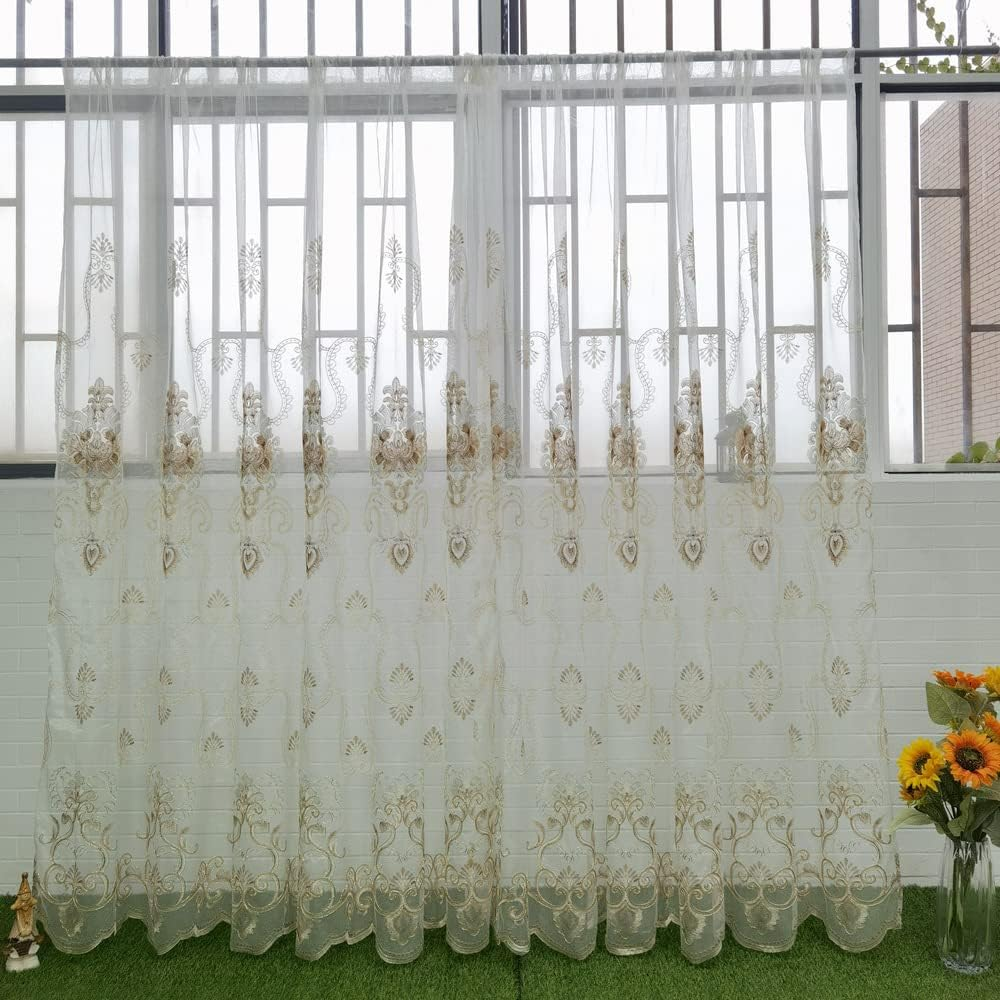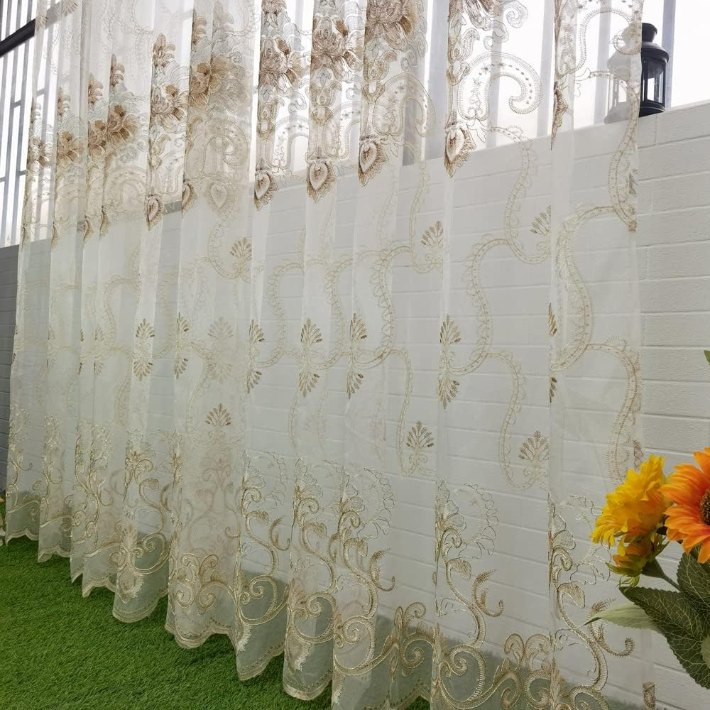European Luxury Sheer Curtains 84 Inches Long for Bedroom Floral Embroidered