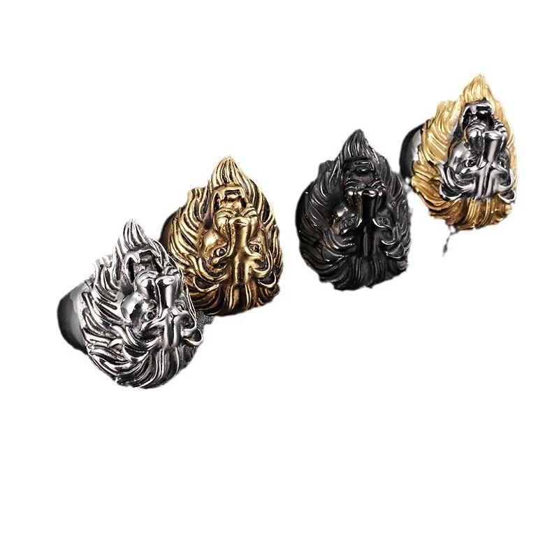 European and American stainless steel ring men's titanium steel lion head ring