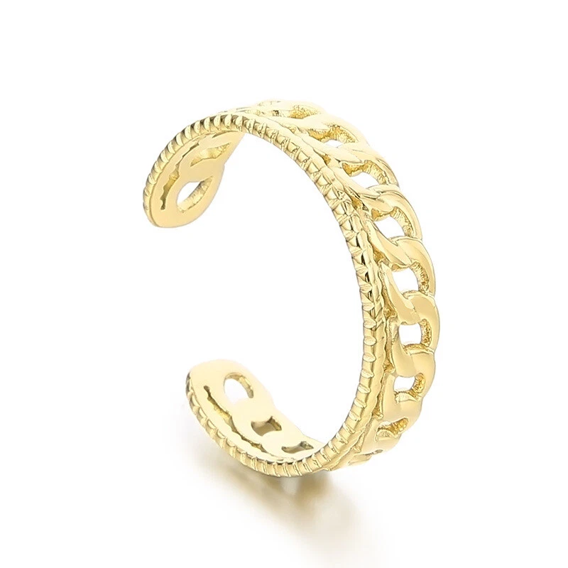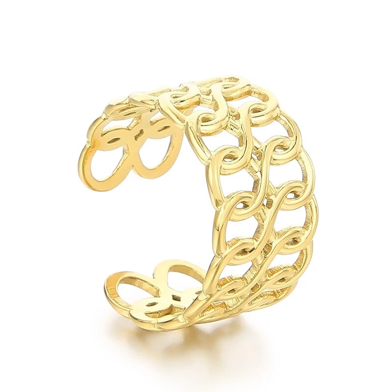 French new niche ring electroplated 18k gold titanium steel ring C open ring