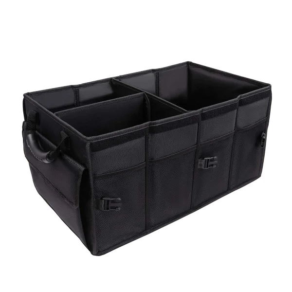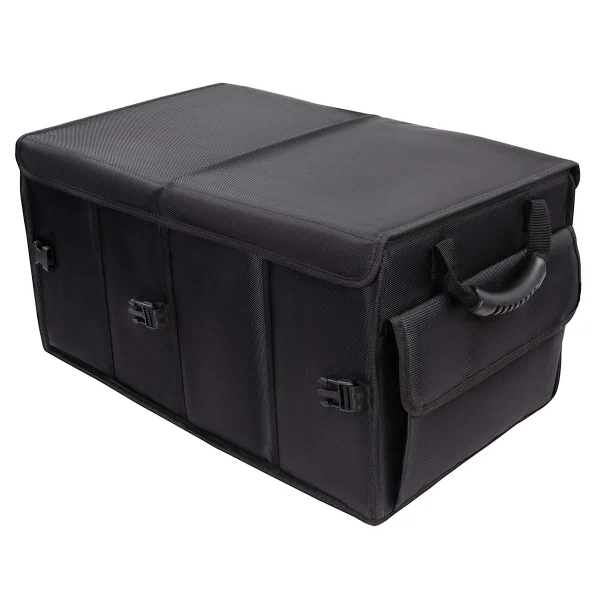 Eurow Automotive Car Trunk Organizer WR Foldable Storage Collapsible Box Bag Features: Easy Grip Handles Water-Resistant Easy to Clean Product Details Eurow’s Automotive Trunk Organizer makes organizing your car easy. There is plenty of room and pockets to store all your travel gear and more. Ideal for road-side emergency equipment, tools, car care accessories, sporting equipment, groceries, & more! Say goodbye to a cluttered car. Features: Built to Last: Made with 1680D polyester oxford material, water-resistant, durable, and simple to clean. Durable handles support heavy loads and make transporting more comfortable. Multiple Storage Compartments: There are 2 removable dividers, creating 3 large compartments to sort belongings. 1 large pocket with a flap closure and 4 smaller mesh accessory pockets are perfect to store smaller items. Bonus Features: A non-slip textured bottom prevents the organizer from sliding around while in use. The lid is removeable for larger items or secured with hook & loop closure to further secure items or provide a cleaner look. Customizable: This organizer can easily fold flat for convenient storage when not in use or can be partially collapsed with buckles for a customized size. Perfect for your truck, car, SUV, garage, closet and more! Includes: Contains one Automotive Organizer Items pictured in the Automotive Organizer are not included and are shown only for scale. Specifications: Dimensions: 60 cm × 35.5 cm × 30.5 cm (23.6 in. × 14 in. × 12 in.)