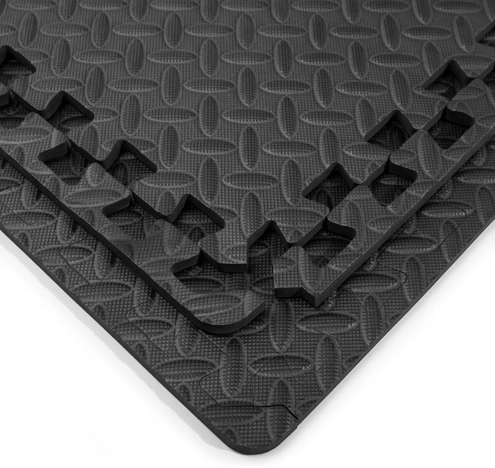 Eva Puzzle Exercise Mats, 1/2” and 3/4” Thick Foam Interlocking Tiles for Gyms, Flooring, Workout, Gym Equipments, Pack of 6/12 ✅ Thickness & Comfort: Experience enhanced cushioning that protects your joints and ensures a comfortable workout session every time. ✅ Durability: Invest in long-lasting quality; our mat is designed to withstand regular and intense workouts without showing signs of wear. ✅ Ease of Cleaning: Sweat it out without the cleanup stress; our mats are crafted for quick and simple wipe-downs post-exercise. ✅ Non-slip Surface: Safety first! Train confidently with our mat's grip-enhancing surface, ensuring stability even during the most rigorous routines. 💪 Storage: Designed for compact storage, our mat easily fits in tight spaces, making it perfect for both home and on-the-go workouts.