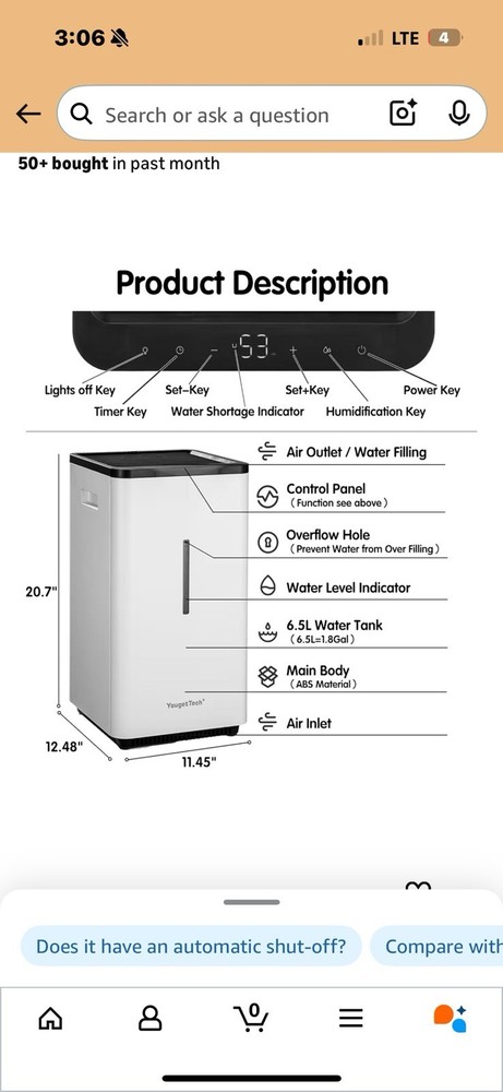 Evaporative Humidifier for Large Living Space, 6.5 L(1.8 Gal) Tank Whole Room
