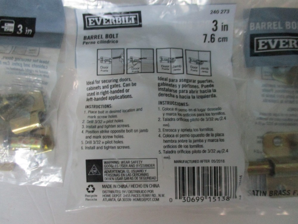 Lot Of 7 Everbilt 2" in. Black Window Bolt Model# 1002 316 511, New Sealed