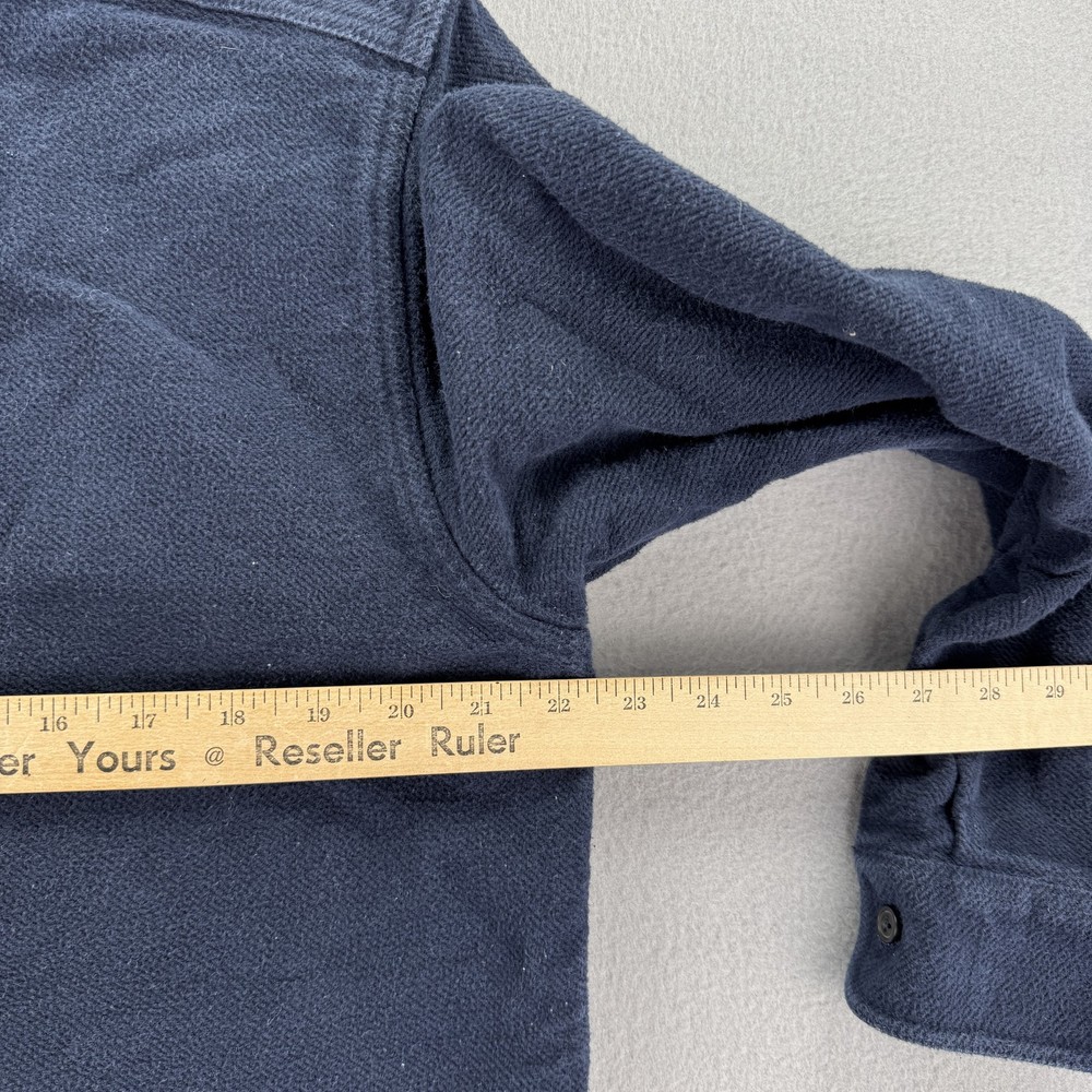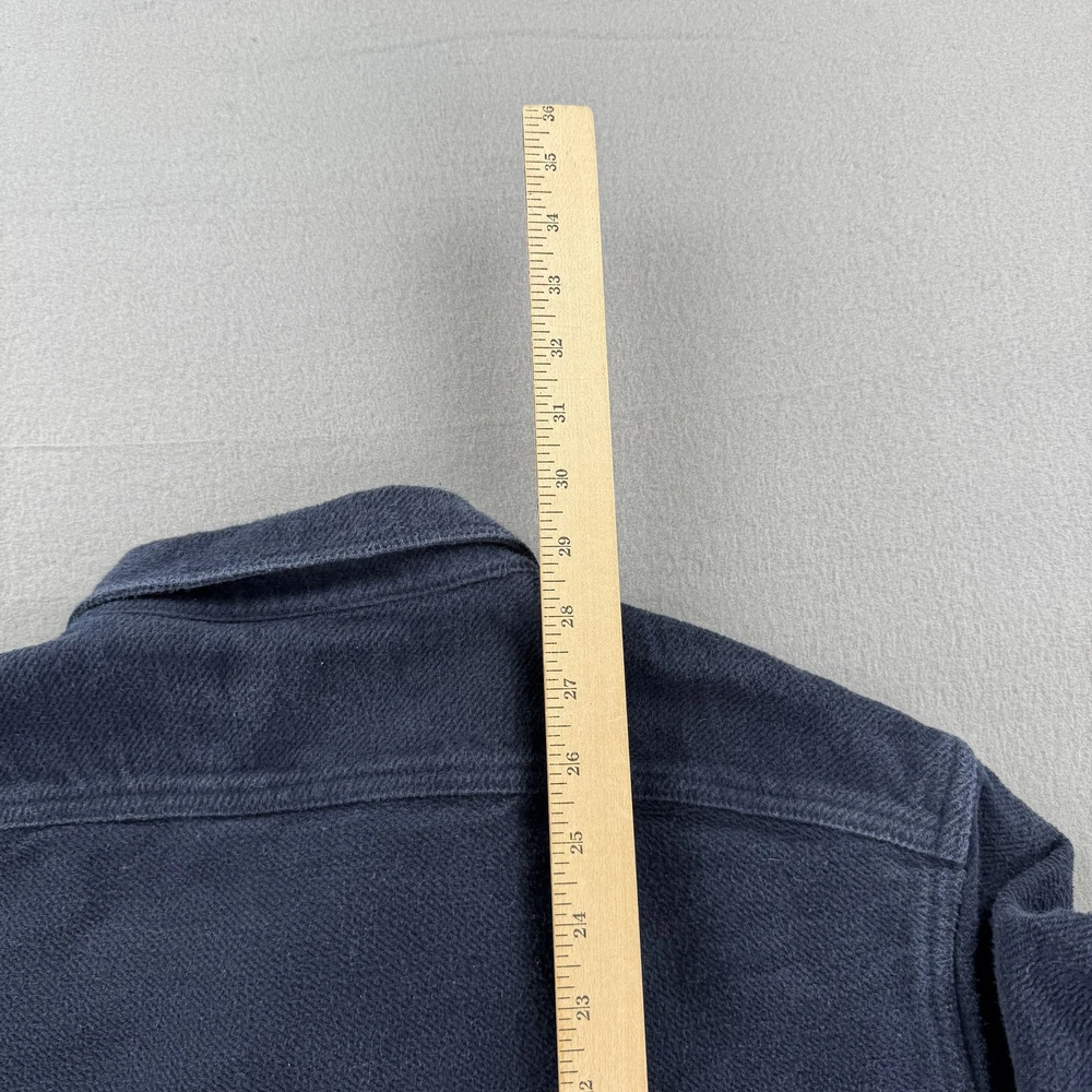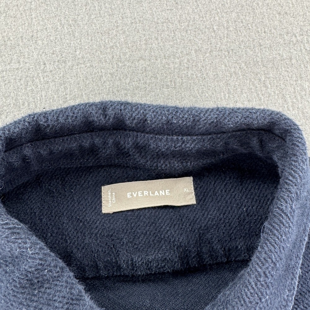 Everlane Shirt Jacket Mens Extra Large Navy Blue Brushed Cotton Overshirt Shacket Condition: Gently worn, no visible flaws. All buttons intact and functioning. Minimal signs of wear. Brand: Everlane Size: Extra Large (XL), tag shows XL Color: Navy Blue Design: Shirt jacket with button front, two button-flap chest pockets, collared neckline, button cuffs Material: Brushed cotton for warmth and softness (exact composition not shown in images) Chest (pit to pit): approximately 25 inches Back length (collar seam to hem): approximately 30 inches Classic shirt-jacket (shacket) style can be worn layered or as a lightweight jacket Timeless, casual look versatile for every season