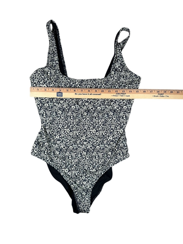 Everlane The Square Neck Floral Padded One Piece Swimsuit Size Large ReNew Low Back Great Preowned Condition / includes bra pads Please refer to photos for size measurements / reach out with any questions or if you are wanting additional photos!