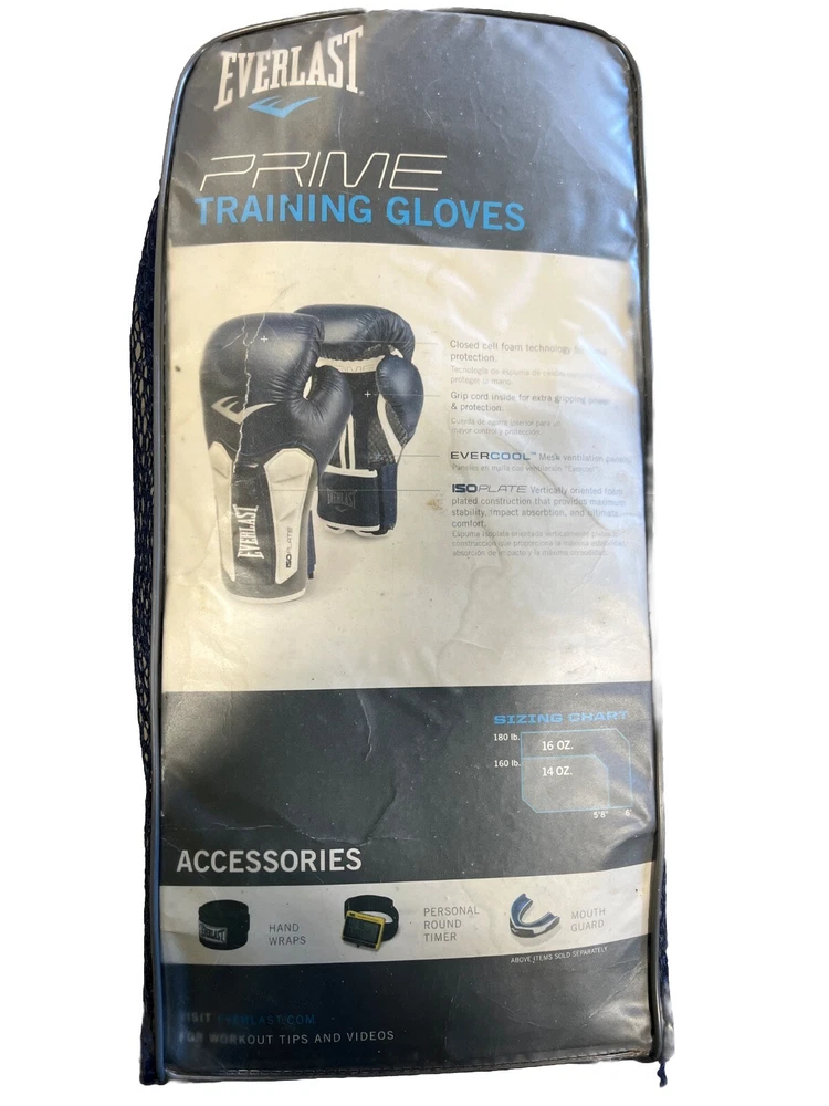 Modified Item:NoWeight:14 oz.MPN:Does Not ApplySub-Type:Training GlovesModel:Everlast PrimeCountry/Region of Manufacture:ChinaCustom Bundle:NoBrand:Everlast