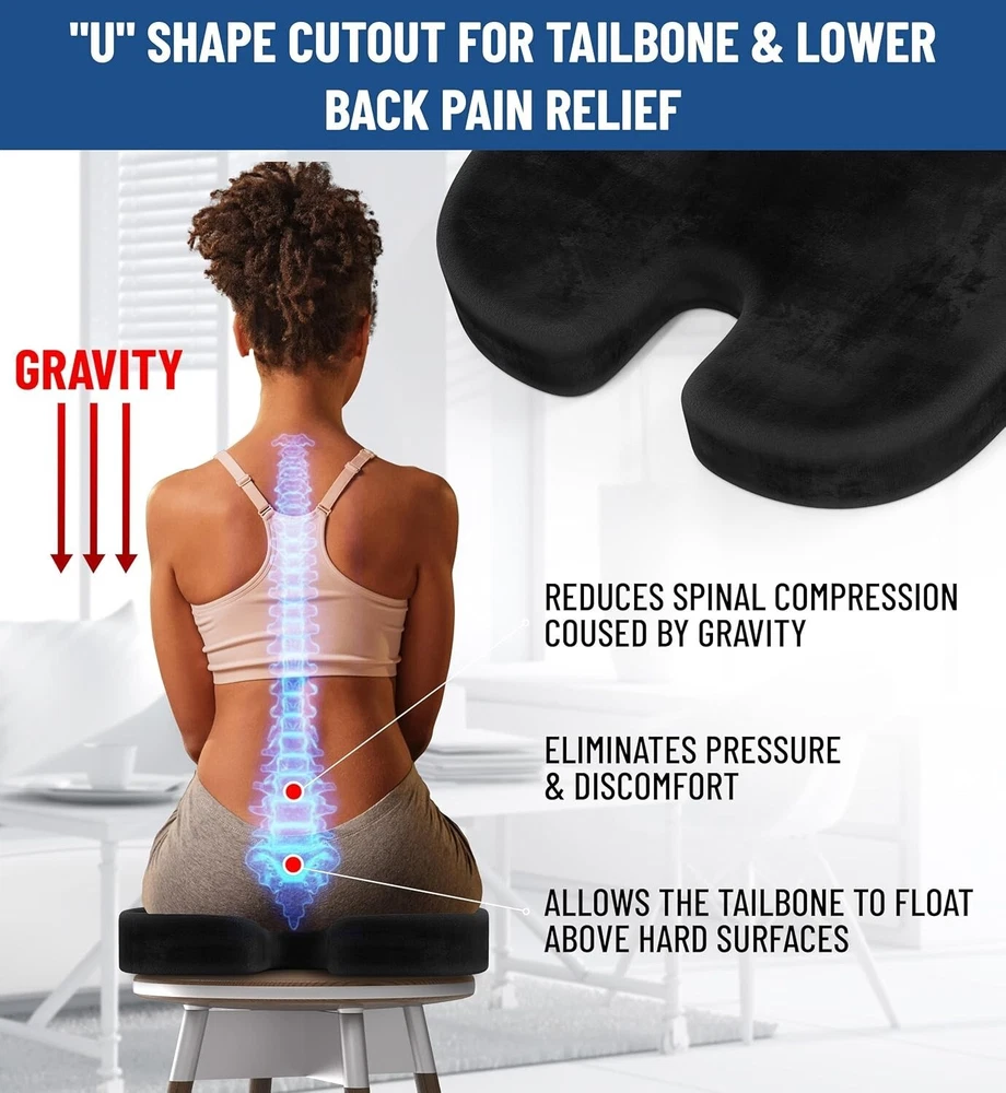 Everlasting Comfort Office Chair Seat Cushion for Back, Coccyx, & Tailbone Pain Doctor Recommended Support & Comfort: Watch our video endorsement to hear why experts recommend this product. Our memory foam seat cushion offers exceptional comfort and support, reducing tailbone pain and promoting healthy posture. Ideal for long sitting sessions. 100 Percent Memory Foam Cushion - Crafted from premium, 100% memory foam, this cushion guarantees lasting durability and reliable support. The memory foam offers a medium firmness of 11.24 pound-force (50 on the Shore 00 scale), making it ideal for those weighing 130 lbs or more. Dimensions: 17"x14"x2.95" Soft & Breathable Cover: Our seat cushion for car features a machine-washable, breathable cover that is easy to clean. The non-slip bottom keeps the butt pillow in place, ensuring stability and comfort Pain Relief & Body Support: The ergonomic "U" shape cutout minimizes tailbone and lower back pain, supporting spinal alignment and enhancing comfort while minimizing gravity's impact on the spine Versatile & Durable: Ideal for office, home, and travel, it fits various seats like office chairs, car seats, and airplane seats and is on the HSA and FSA eligible items only list. Our sciatica pain relief pillow keeps its shape over time CAUTION: Non-slip rubber bottom may stain light colored leather/vinyl. Before use, wash cover in soap and hot water. Once the cover is dry, test for color fastness with a towel and hot water.Treat your back with a pure memory foam seat cushion. Recommended by orthopedists and doctors to alleviate pressure in strategic areas like the tailbone, coccyx, back, spine hips, & sciatic nerves. Also provides added comfort for women during pregnancy. Versatile design is ideal for most commonly sized office chairs, airplane seats, car seats, stadium seats, benches, etc. Please be sure to check our product dimensions (17 x 13.2 x 2.4 inches) to ensure a proper fit.Optimal density for superior comfort and durability for anyone 100-300 pounds. Our removable soft cover is machine washable and slip resistant. If anything happens to your Everlasting Comfort Memory Foam Seat Cushion or you’re unsatisfied for any reason, no need to buy another. We will send you a free replacement or give you a full refund. We take personal pride in delivering ultimate customer satisfaction. We are here to serve you. Shipping We offer FREE shipping on all orders! We ship within Three business days of payment, usually sooner. We use a selection of shipping services such as UPS, FedEx, USPS etc. We only ship to the lower 48 states, no APO/FPO addresses or PO Boxes allowed. Local pickups and combined shipping options are not provided at this time. Return You can return a product for up to 30 days from the date you purchased it. Any product you return must be in the same condition you received it and in the original packaging. Please keep the receipt. Payment We accept payment by any of the following methods: PayPal Please pay as soon as possible after winning an auction, as that will allow us to post your item to you sooner! Feedback Customer satisfaction is very important to us. If you have any problem with your order, please contact us and we will do our best to make you satisfied. Contact Us If you have any queries, please contact us via ebay. We usually respond within 24 hours on weekdays. Please visit our eBay store to check out other items for sale! Thank you for shopping at our store.