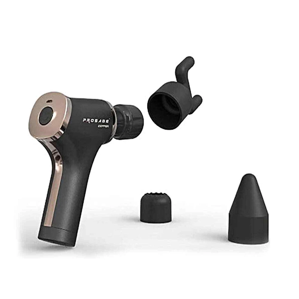 Percussion massager to increase the blood flow. Relieves body soreness through deep and Powerful massage. Features 4 massage heads with 4 different speeds meant to target different parts of the body. It allows you an appropriate amount of pressure leaving you healthier and more fit. Equipped with 2900 mAh rechargeable Lithium-ion battery, it allows for up to 8 hours of use. Military precision engineering. Low noise experience. Features:Percussion massager: Increase blood flowU-Shaped head: Mainly used for spine, neck, & shoulderCone head:For trigger point massageRound head: Suitable for whole-body massage4 speed levels: Relieves soreness through deep & powerful massages2,900mAh battery: Allows 8 hour of use Free Shipping Over $49.99* Details Evertone Prosage copper massage gun Product Description: Percussion massager to increase the blood flow. Relieves body soreness through deep and Powerful massage. Features 4 massage heads with 4 different speeds meant to target different parts of the body. It allows you an appropriate amount of pressure leaving you healthier and more fit. Equipped with 2900 mAh rechargeable Lithium-ion battery, it allows for up to 8 hours of use. Military precision engineering. Low noise experience. Features: Percussion massagerIncrease blood flow U-Shaped headMainly used for spine, neck, & shoulderCone head: For trigger point massageRound head: Suitable for whole-body massage4 speed levels: Relieves soreness through deep & powerful massages 2,900mAh batteryAllows 8 hour of use