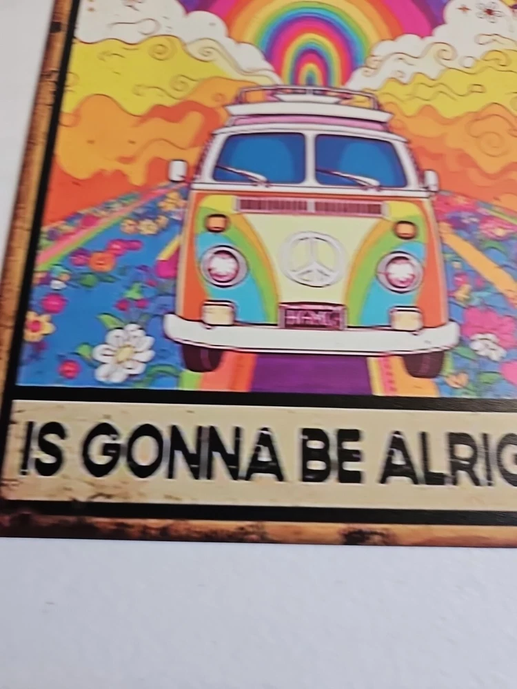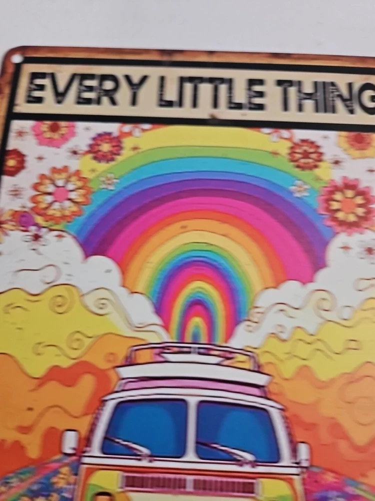 Add a touch of bohemian charm to your living space with this Every Little Thing Is Gonna Be Alright sign. The rustic-looking 8x12 metal sign is perfect for any room, and its versatile mounting options make it easy to hang on a wall or door. The sign features a rusted look and decorative details that add an inspirational touch to your decor. Its medium size and multicolor pattern make it a statement piece that is sure to catch the eye. Whether you're looking for a vintage vibe or just want to add some positivity to your space, this sign is a must-have.