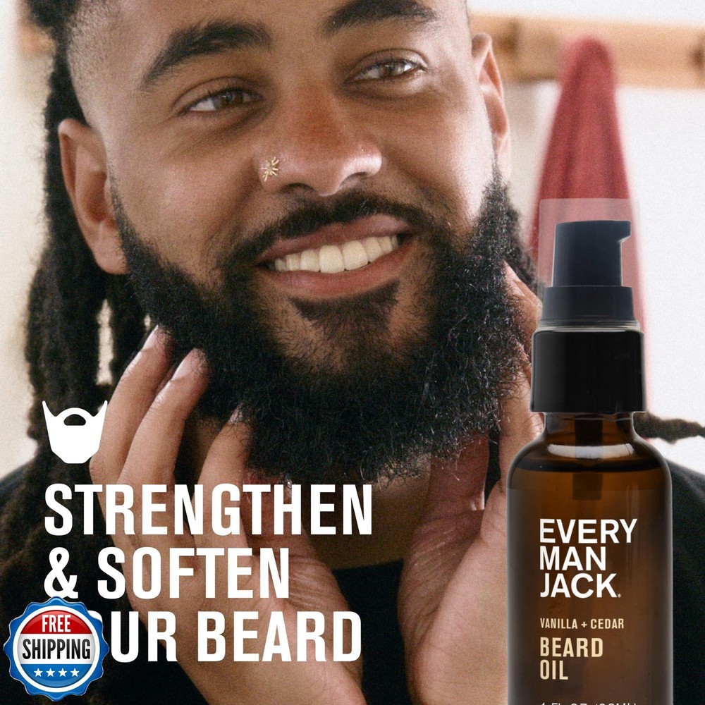 Every Man Jack Mens Beard Oil - Vanilla + Cedar Fragrance - Deeply Moisturizes and Softens Your Beard and Adds a Natural Shine - Naturally Derived with Shea Butter and Argan Oil - 1 fl oz Features LOOK LIKE A LUMBERJACK. FEEL LIKE SILK: You don’t have to suffer to look like a boss. Rub in our beard oil to soften your beard and nourish your skin and you’ll be feeling as good as you look. SMELL WARM AND WOODY: A bold yet balanced blend of warm vanilla and rich cedar. Smooth with a hint of ruggedness—fresh, woodsy, and effortlessly confident. NATURALLY DERIVED INGREDIENTS: Rub in our blend of Naturally Derived Vitamin E, Argan, and Borage to soften, nourish, and finish with a healthy shine. TRUSTED BY MORE THAN 5 MILLION MEN: Born at the base of Mt. Tam, CA. Proudly made in the US and B Corp Certified. Loved by millions of men the world over. THE DREAM TEAM: With daily beard wash, hydrating oil, moisturizing butter, and styling balm, our all-star squad will take your beard care routine to championship levels. Shipping Free & Fast Shipping: We offer free shipping to most of the USA with a normal delivery time of 3-7 days. However, due to the current situation, additional delivery time (up to 3 weeks) may be required for some items. Alternative Carriers: We may use alternative carriers (e.g., USPS, FedEx, UPS) to ensure your package arrives safely and on time. Due to the use of multiple carriers, we are unable to provide a tracking number automatically. Handling Time: Orders are processed and shipped within 1-2 business days of receiving cleared payment. Shipping Restrictions: Shipping to Alaska, Hawaii, Puerto Rico, Guam, and other US territories may incur shipping charges or delivery restrictions. Please contact us before ordering, or your order can be refunded/cancelled. State Restrictions: Certain items may not be shipped to California due to state regulations. Contact for Tracking Updates: If you require tracking updates or have any concerns about the delivery of your order, please feel free to contact us, and we will be happy to assist you. Return Policy 30-Day Hassle-Free Returns: If you are not completely satisfied with your purchase, you can return the item for free within 30 days of receiving it for a full refund or exchange. Easy Return Process: Contact us, and we will provide you with a prepaid return shipping label and detailed instructions. No Restocking Fee: There are no restocking fees for returns. However, the buyer is responsible for return shipping costs if the return is not due to a seller"s error. Refund Processing: Refunds will be processed within 1 business day of receiving the returned item in its original condition. Feedback Your feedback is extremely important to us. We strive to provide the best products and customer service possible. If you are satisfied with your purchase, please take a moment to leave us a positive review. If you have any concerns or issues with your order, please contact us before leaving negative feedback. We are committed to resolving any problems and ensuring your satisfaction. Contact Us If you have any questions or concerns, please feel free to reach out to our customer support team. You can contact us through the eBay messaging system. We are available Monday to Friday, 9:00 am to 5:00 pm EST, and we will do our best to respond to your inquiry within 24 hours. Thank you for supporting our small family business!