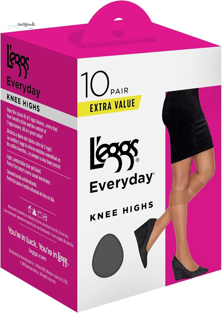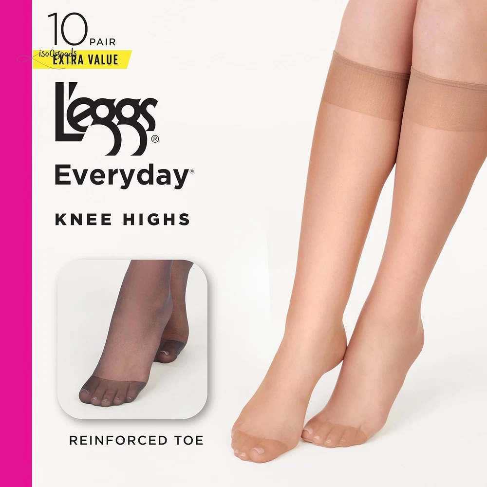 Elevate your everyday essentials with the L'eggs Everyday Reinforced Toe Knee High Stockings. Designed for comfort, durability, and timeless style, these knee-high stockings are the perfect addition to any wardrobe. The classic knee-high length adds a touch of sophistication to any outfit, while the neutral tones effortlessly complement a variety of styles and ensembles. Whether paired with skirts, dresses, or trousers, these stockings effortlessly elevate your look with a polished finish. Enhanced with a reinforced toe, these stockings are designed to offer exceptional durability and longevity, making them perfect for everyday wear. The reinforced toe area is crafted to withstand the rigors of daily wear, providing extra strength where you need it most. Constructed with quality materials and expert craftsmanship, the L'eggs Everyday Reinforced Toe Knee High Stockings offer unbeatable value and style. Treat yourself to comfort, durability, and grace with this essential wardrobe staple. Whether you're heading to the office or stepping out for a special occasion, L'eggs Everyday Stockings elevate your style with timeless elegance and unmatched comfort.