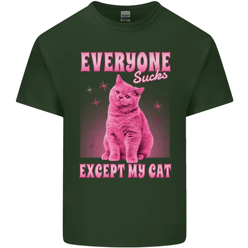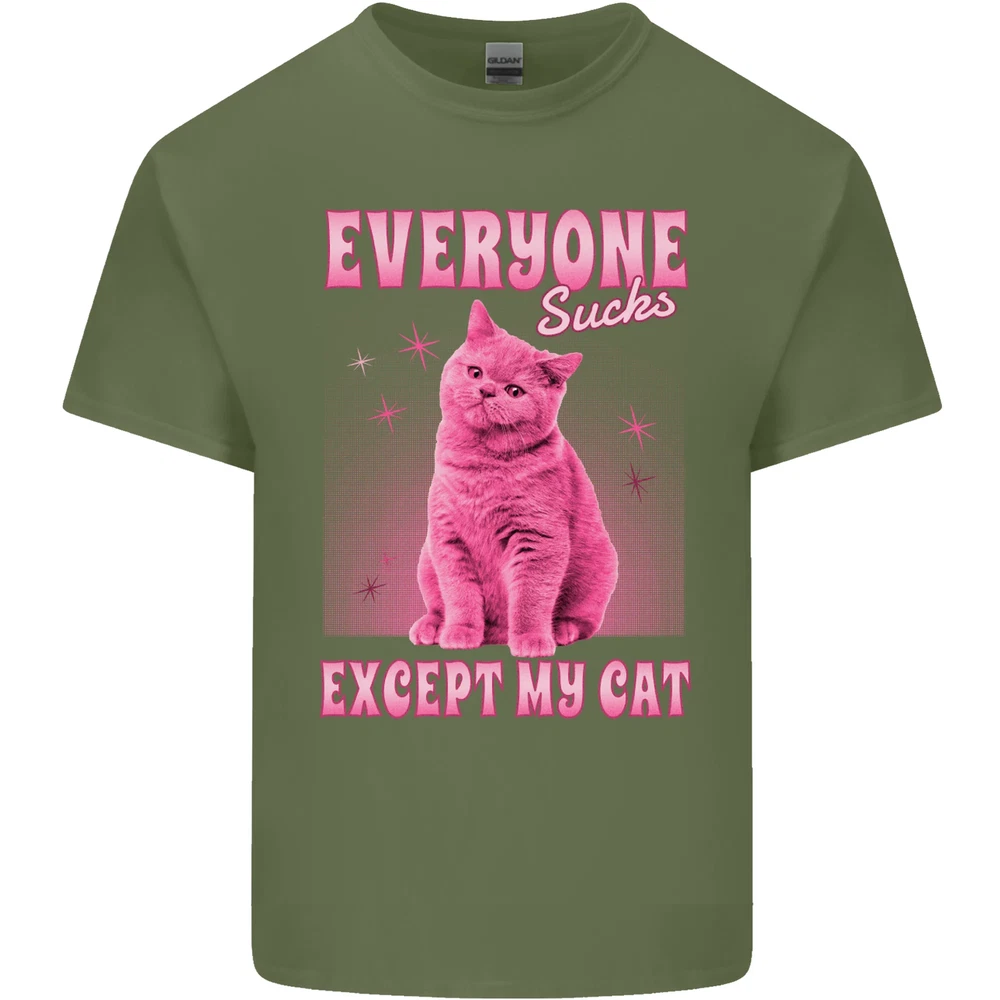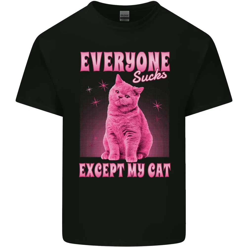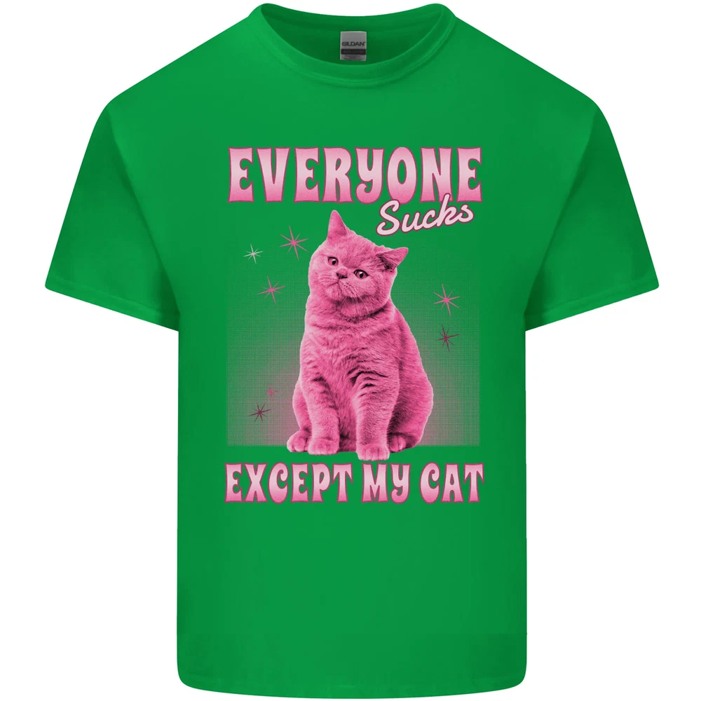Everyone Sucks Except My Cat Mens Cotton T-Shirt Tee Top