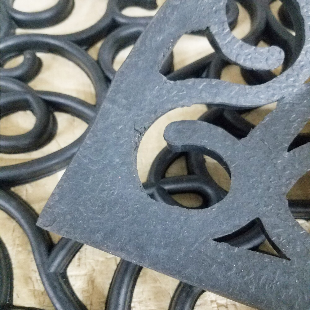 This doormat is perfect for keeping dirt outside! The sturdy rubber material grips well, and the half-round shape fits snugly by the door. Easy to clean and looks sleek in black—highly recommend!