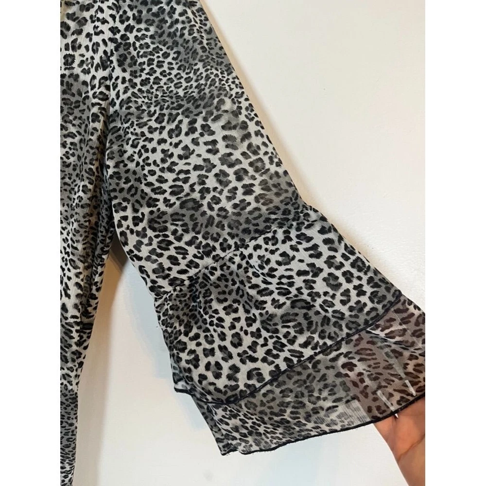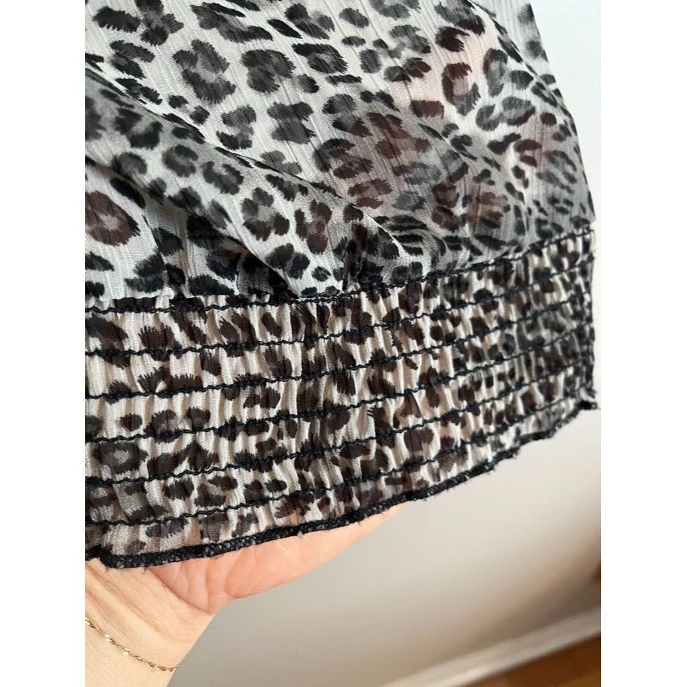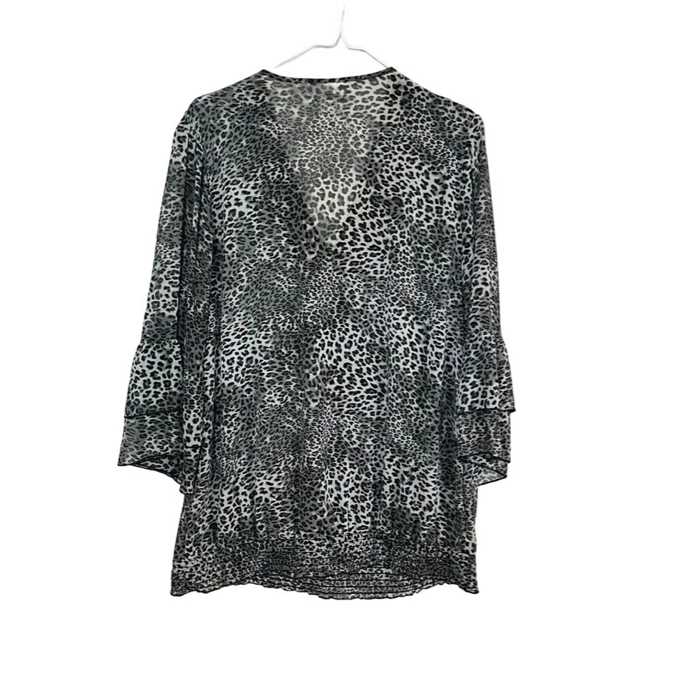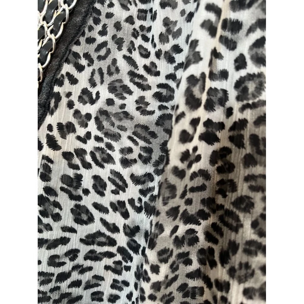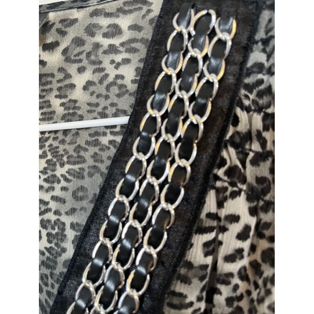 Evolution Top Women 1X Black V Neck Metallic Chain Braided Animal Print Leopard