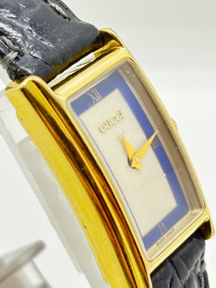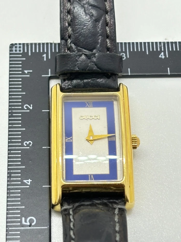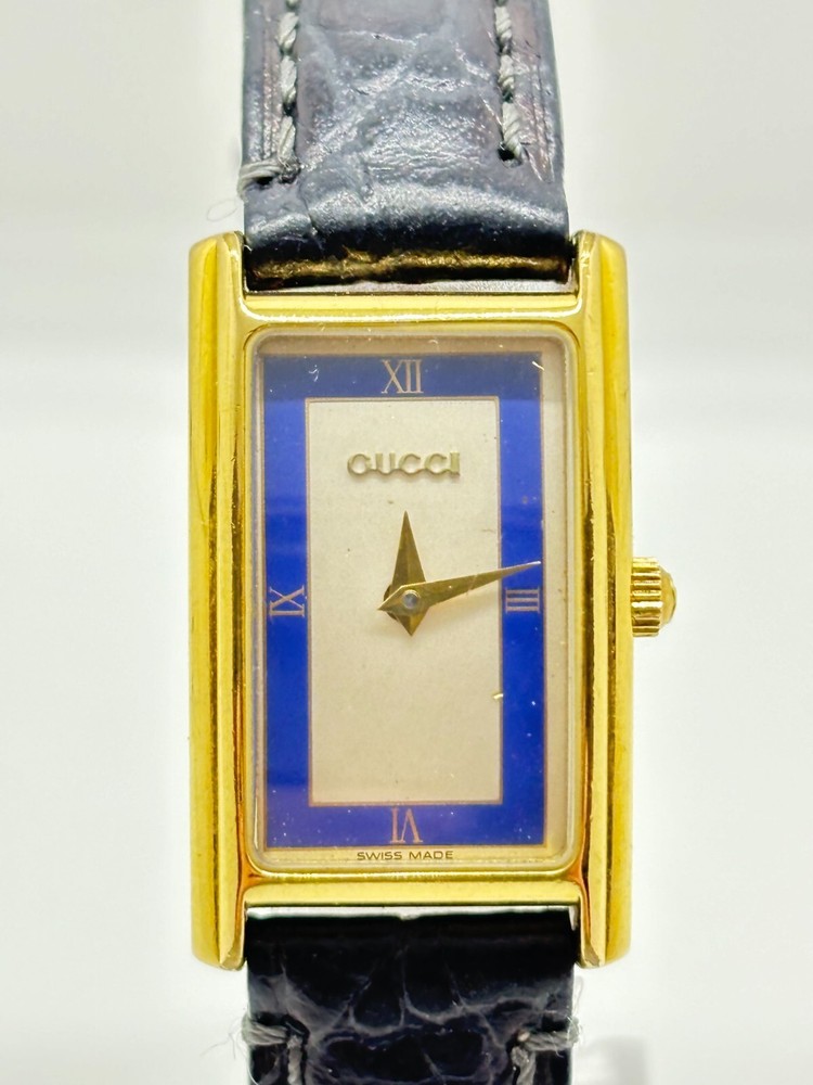 Band Color: Blue Features: 12-Hour Dial Reference Number: 2600L Style: Casual, Classic, Dress/Formal, Luxury Dial Color: Blue Bezel Color: Blue Type: Wristwatch Model: 2600L Display: Analog Year Manufactured: 1990-1999 Department: Women Country/Region of Manufacture: Switzerland Brand: Gucci Case Color: Blue Watch Shape: Rectangle Movement: Quartz UPC: Does not apply Seller Notes: “Please see photos and description.” gtin13: Does not apply