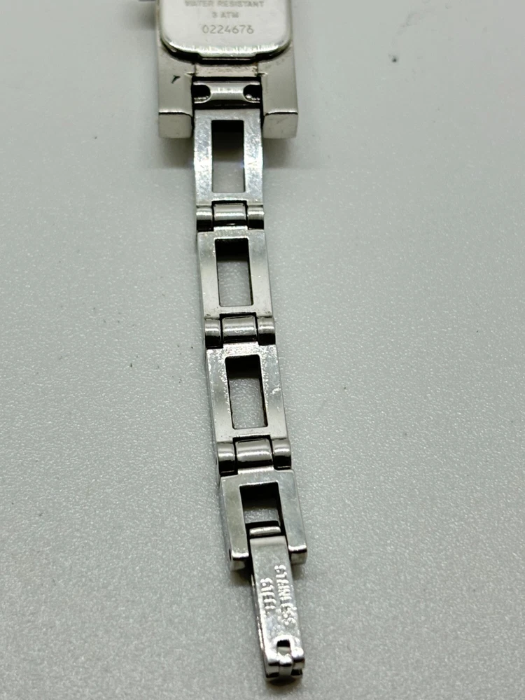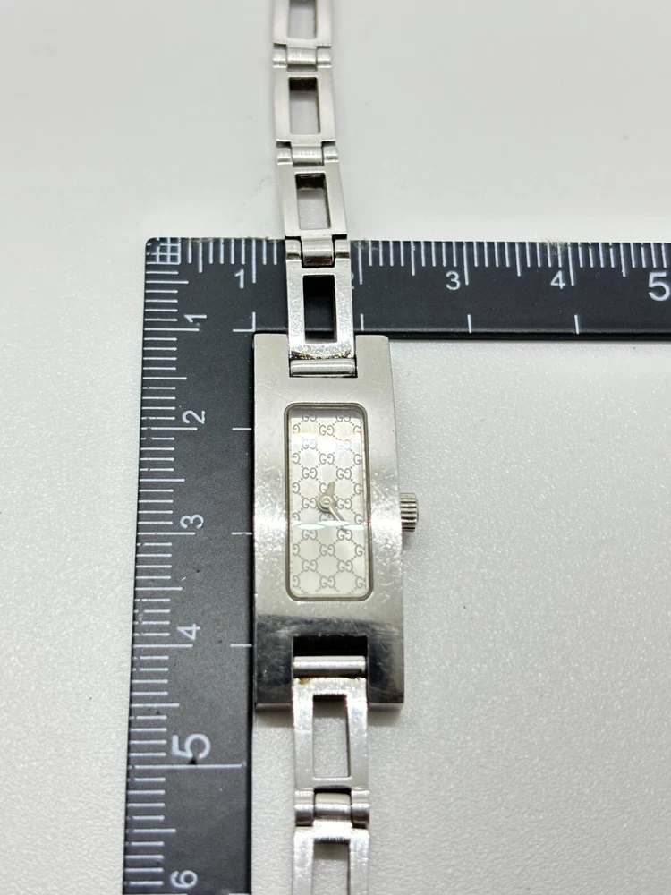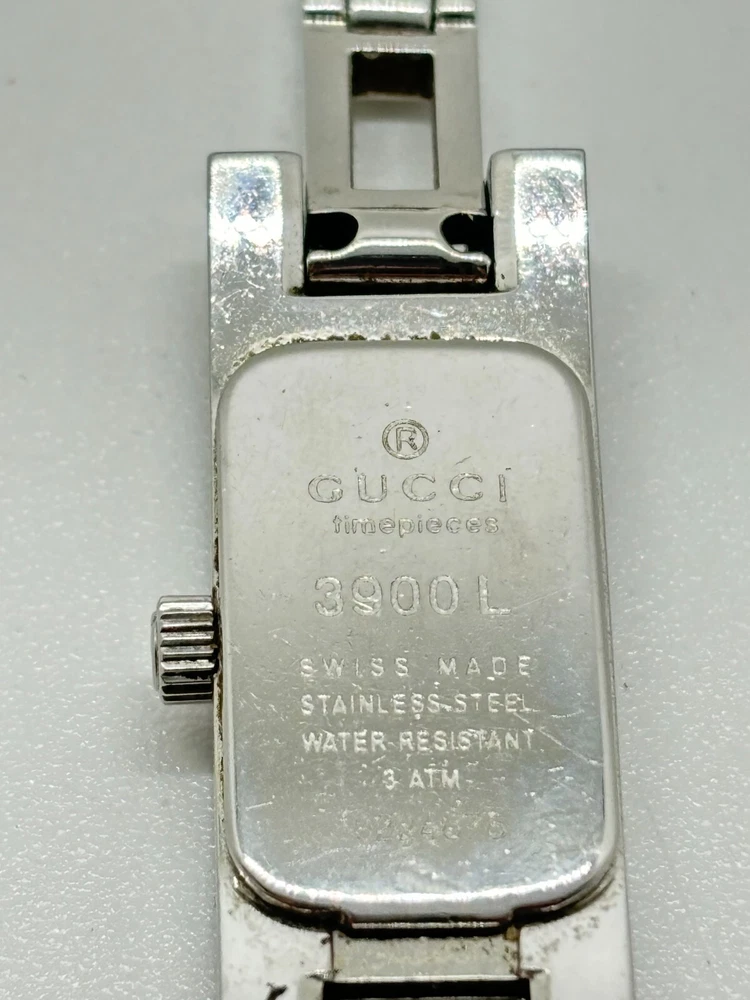 Seller Notes: “Please see photos and description.” Case Size: 12 mm Lug Width: 6 mm Case Material: Stainless Steel Country/Region of Manufacture: Switzerland Band/Strap: Bracelet Bundle Description: It comes with the box, and the instruction manual. Case Color: Silver Max Wrist Size: 6.26-6.75 in Caseback: Snap Style: Classic, Dress/Formal, Luxury Band Color: Silver Band Material: Stainless Steel Display: Analog Reference Number: 3900L Bezel Color: Silver Movement: Quartz Seller Warranty: No With Service Records: No Model: Swatch Lady Water Resistance: 30 m (3 ATM) Custom Bundle: Yes Type: Wristwatch Department: Women With Original Box/Packaging: No With Papers: No Customized: No Watch Shape: Square Brand: Gucci UPC: N/A Dial Color: Silver gtin13: N/A Features: Swiss Made With Manual/Booklet: No