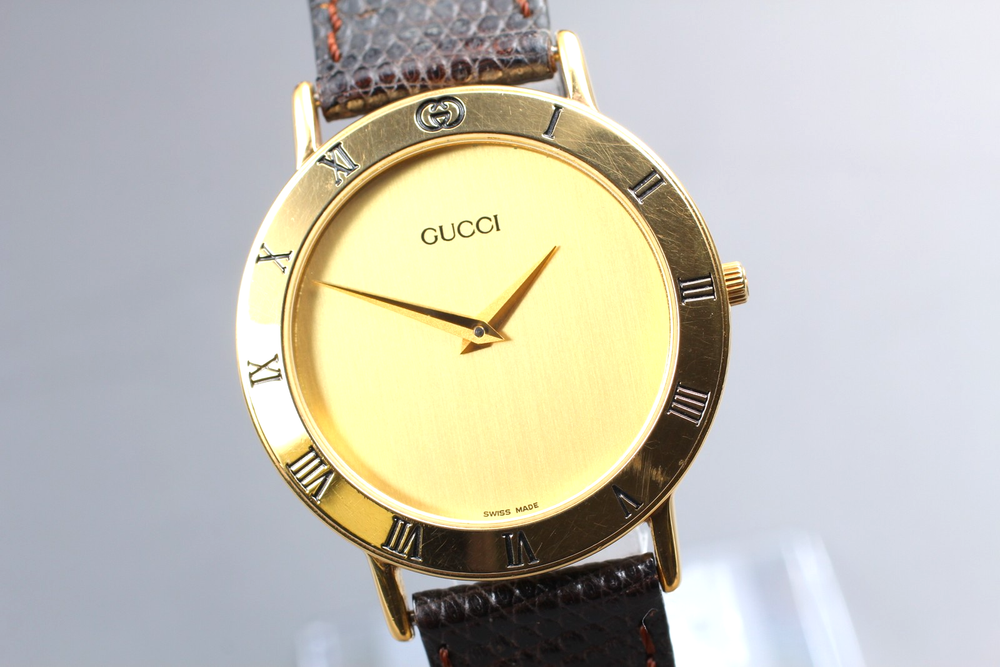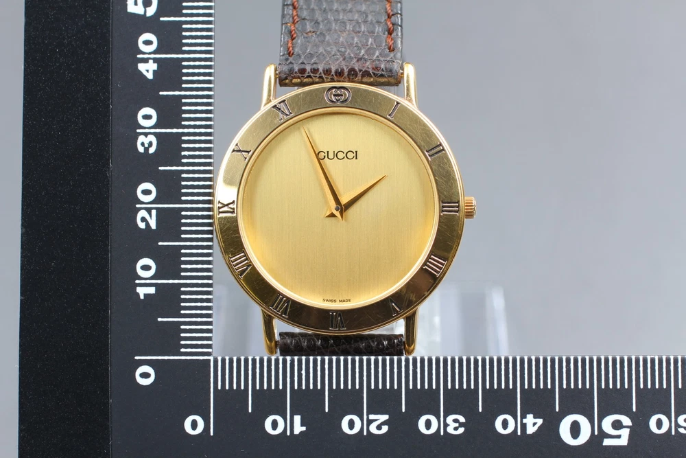 [Exc+5] Vintage GUCCI 3000.2.M Gold Dial 33mm Quartz Men's Watch From JAPAN #238 Description Total Condition; EXCELLENT+++++ TOP MINT Pre-owned, Almost new item MINT Pre-owned, Like new NEAR MINT Pre-owned, almost no signs of use EXCELLENT+++++ Pre-owned, minimal signs of use EXECELLENT Pre-owned, heavy signs of use VERY GOOD Poor appearance Case : Near MINT Band : Exc+++++ Windshield : Near MINT New Battery Serial Number; 040777 Appearance; Appearance is beautiful. Band: Fits wrists up to about 185 mm ( 7.28 inches). Case size: About 33 mm Length size : About 38 mm tiny scuffs from normal use. It shows signs of use. *Please check photos. Functional; It works properly. Bundled Items; All you can see on the picture will be included in a set of a package. Above condition is based on my own opinion. Please check the photo carefully. Please feel free to contact me for any questions! Thank you. Shipping I send a product by DHL . I attach the tracking number. Please bid it without worrying. Shipping is available from Monday to Friday. Weekends are not available because office is closed. Storage and Packing Storage Immediately after shooting, it is placed in a closed container with desiccant and stored for 24 hours and 365 days in a temperature and humidity controlled warehouse. All products, including cameras and lenses, are stored in a temperature- and humidity-controlled warehouse 24 hours a day, 365 days a year. Packing By weight and shape of each product, I use 13 kind of cushioning materials and pursue safety and weight reduction. Returns Unconditional Return Policy Customer service and satisfaction are very important to us. I have an unconditional return policy if notified within 30 days of the receipt of the item. All returned items must be the original condition. All return requests must be made within 30 days of the receipt of the item. Please contact me first for return before you ship it back to me. The postage of the returned goods is a seller burden. International Customers Please Note: Import duties, taxes, and fees are not included in the item price or shipping costs. (For US customers, duties are included in the shipping cost so there are no additional costs other than sales tax.) These fees are the buyer's responsibility. Please check with your country's customs office to determine what these additional costs will be prior to bidding or buying.
