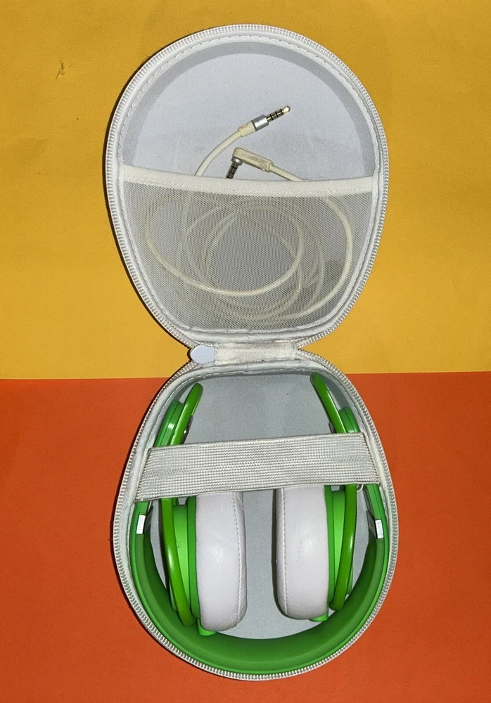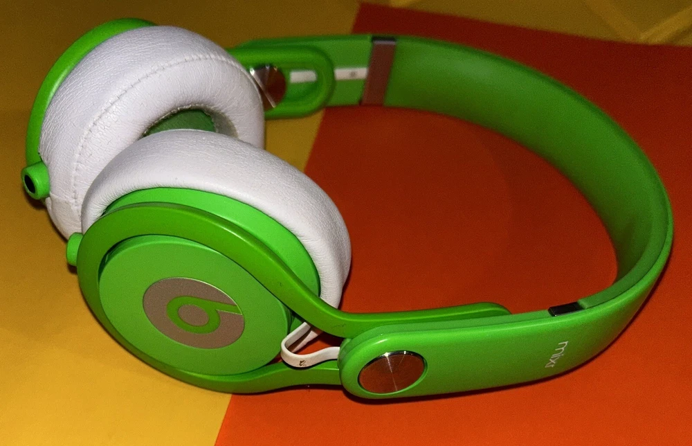 (Little piece on image 15 attaches to the aux cable, it functions as a volume rocker. I haven’t tried putting it back on. Please message me if you have any questions.) Experience high-quality sound with these Beats by Dr. Dre Mixr headphones in green. Designed with an adjustable headband and double earpieces, these headphones provide a comfortable fit for studio monitoring, DJing, and live monitoring. The 3.5mm jack allows for easy connectivity, while the closed-back feature ensures that you can focus on your music. In addition to the headphones, this package includes the official packaging and is complete with all necessary components. The Beats by Dr. Dre Mixr headphones provide active noise cancellation and ambient sound mode, making them perfect for any music lover. The microphone type is none, but the headphones are suitable for studio monitoring, DJing, and live monitoring.