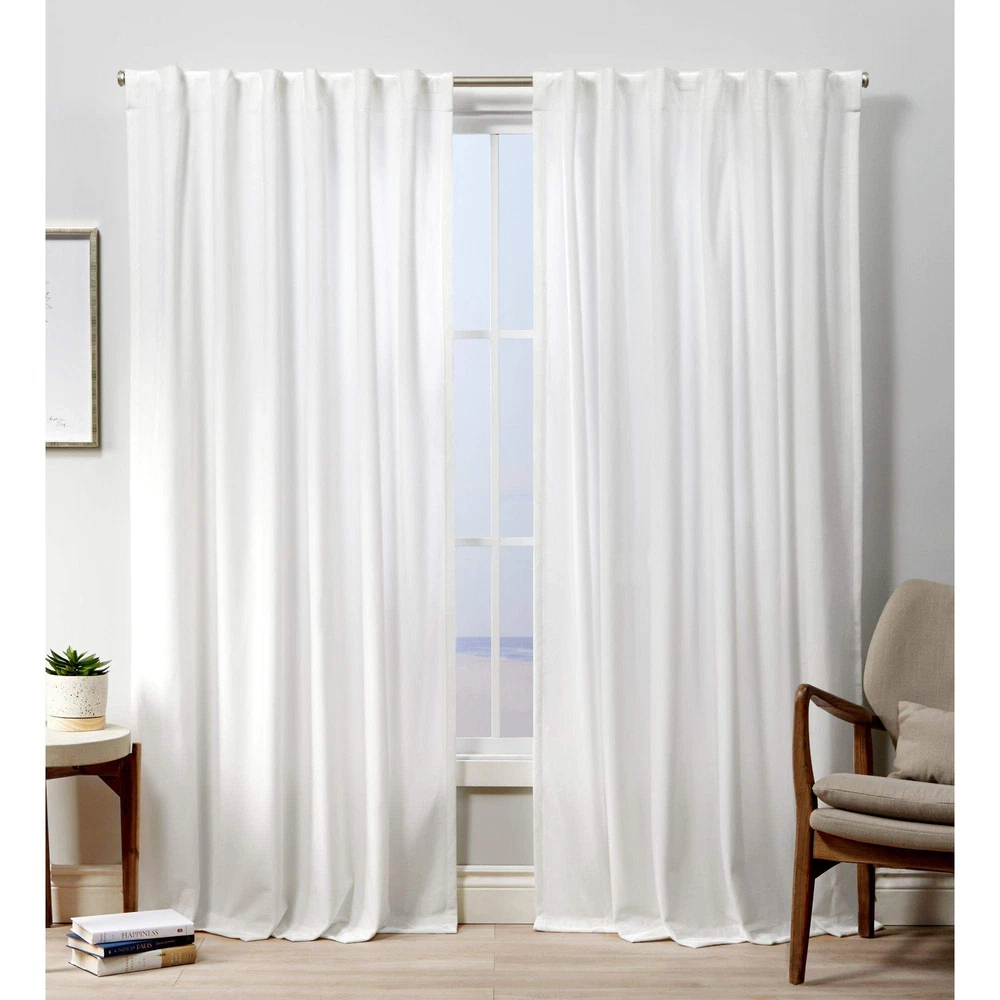 The Velvet Heavyweight Tab Top Window Curtain Panels in winter white bring a luxurious look and feel to any room and offer a simple way to add color and texture to your decor. These plush velvet panels have a light-filtering opacity and filter light beautifully into your space while also providing privacy. Hang 3 ways: using the rod pocket, the back tabs, or with curtain clips (not included). For proper look and fullness, the curtains should measure 2-3 times the width of your window. LUXURIOUS: The Exclusive Home Velvet Heavyweight Tab Top Curtains offer a luxurious look for your windows in any room. The light-filtering fabric filters light beautifully into your space while also adding color and texture to your decor. LIGHT FILTERING OPACITY: light filtering opacity provides privacy to your room while still allowing natural light to shine through. It's perfect for diffusing light beautifully into your space. 3 HANGING OPTIONS: Drape these curtain panels (1) from the rod pocket for a classic look, (2) using the tabs to create an elegant pleated effect, or (3) using clip rings for easy, slide open and closed (clip rings are not included). Fits up to 1.5" diameter rod. SET OF CURTAIN PANELS: Includes (2) curtain panels, each measuring 52"W x 84"L. PLUSH VELVET: These well-crafted, plush velvet panels enhance any space in your home with vivid color and lavish texture, Hang them in your living room, dining room, bedroom, office, hallway, or entryway.