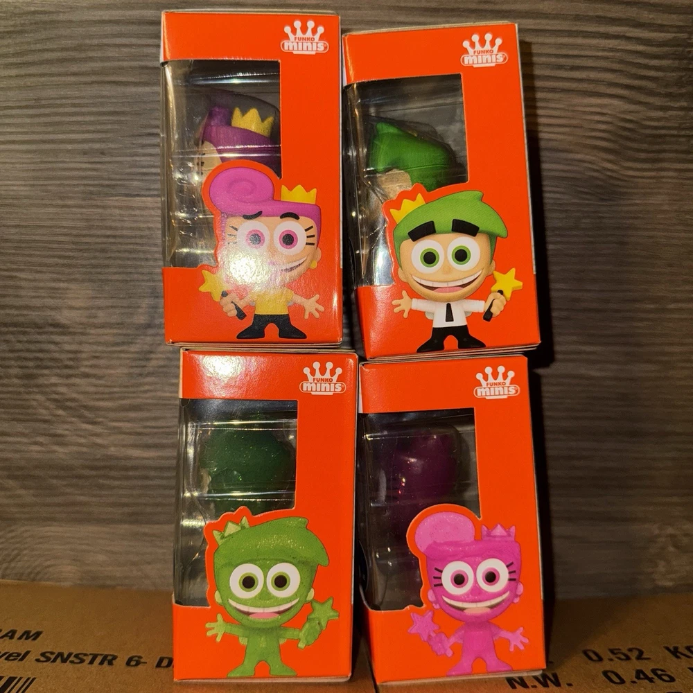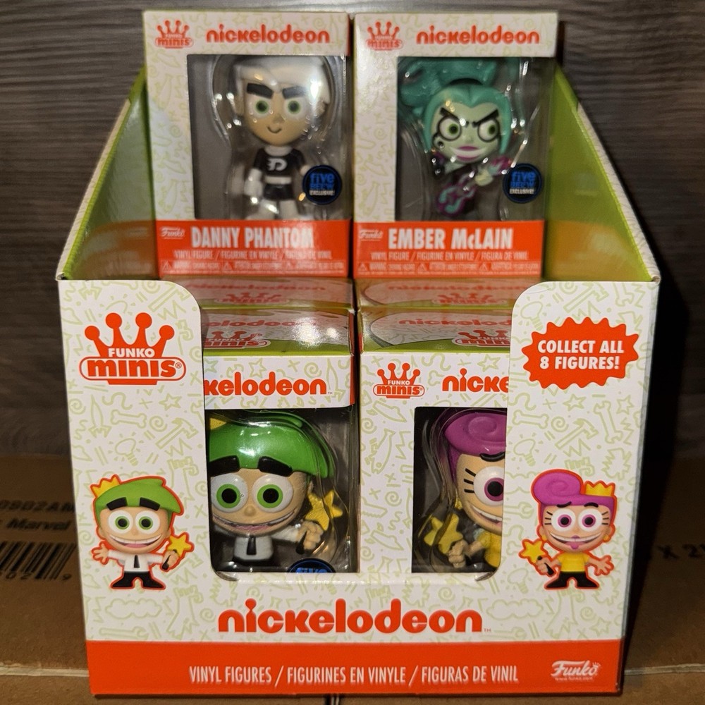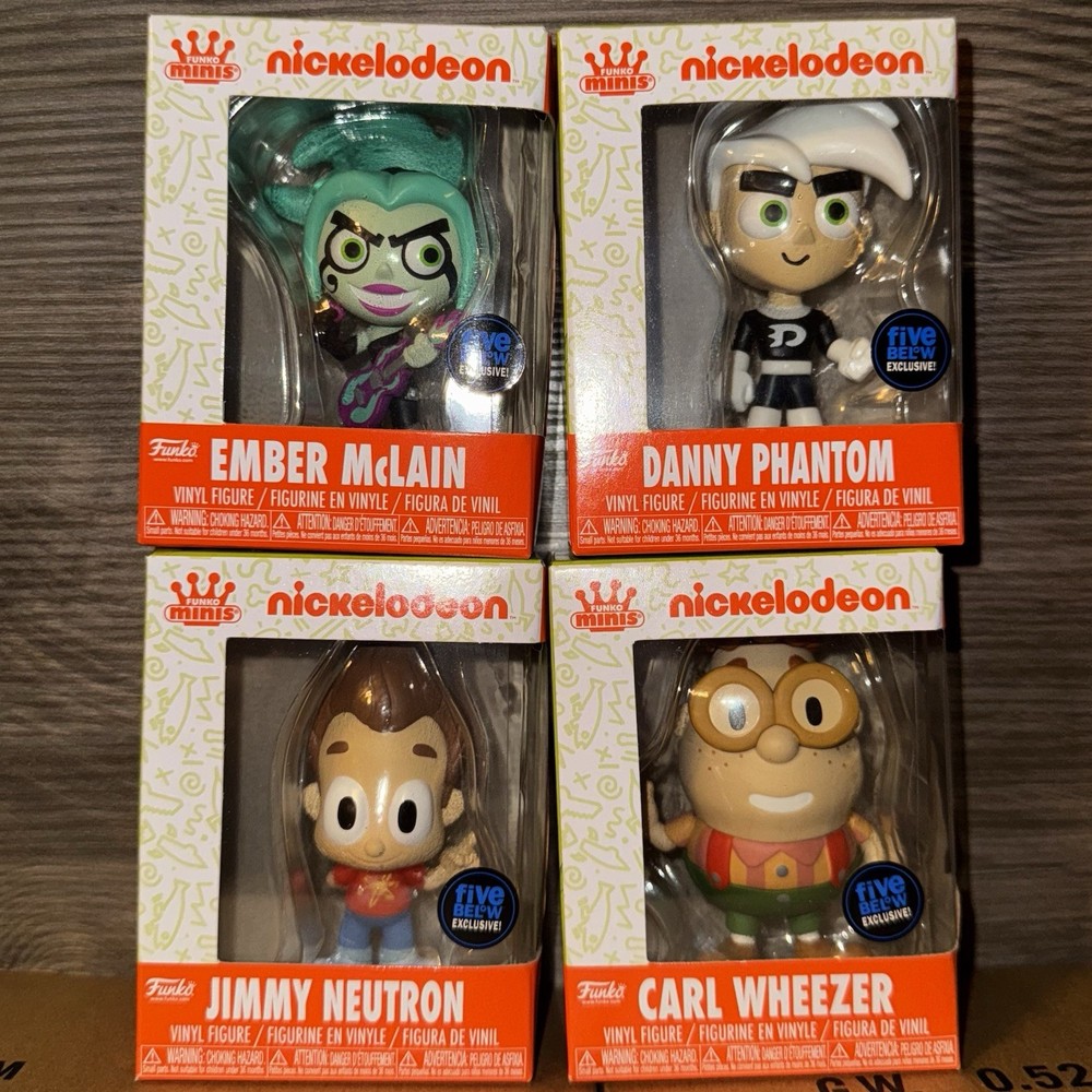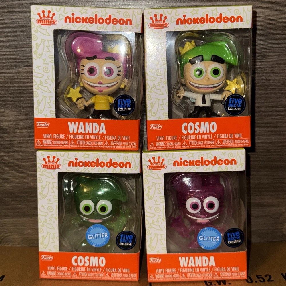 This listing includes a Complete Set of 8 Nickelodeon Five Below Exclusive Funko Minis from 2024. This set comes with characters from The Fairly Odd Parents, Danny Phantom, and The Adventures Of Jimmy Neutron Both Genius The Minis included are: Danny Phantom Ember McLain Jimmy Neutron Carl Wheezer Cosmo Wanda Cosmo Translucent Green Glitter Variant Wanda Translucent Pink Glitter Variant Figures are brand new, may have minor imperfections This set is a great expansion set to the 2018 Nickelodeon Mystery Minis Set Will ship with care If you have any questions please ask me! :) Nick Timmy Turner
