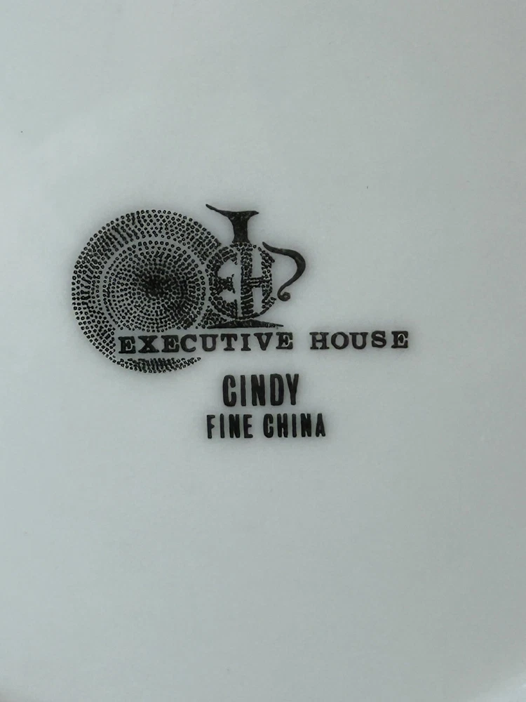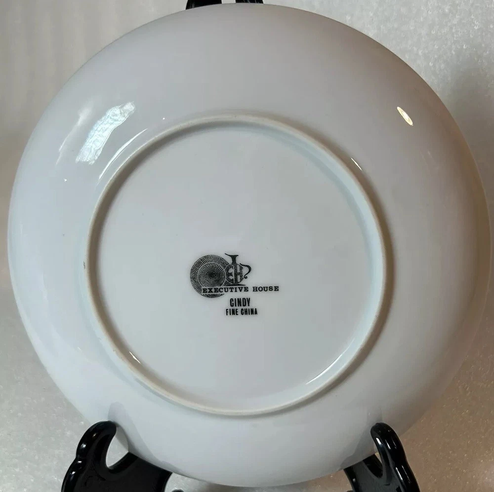 Vintage: Yes gtin13: Does not apply Pattern: Cindy Material: Porcelain Item Weight: 1 lb Style: Mid-Century Modern Origin: Japan Brand: Executive House Antique: No Set Includes: Bread Plate Product Line: Cindy Shape: Round Number of Items in Set: 1 Handmade: No Item Height: .5 in Era: Mid 20th Century (1941-1969) Backstamp: Printed Country/Region of Manufacture: Japan Theme: Flower Manufacturer Warranty: NA Time Period Manufactured: 1960-1969 Color: White MPN: KitPorcExecHouCindyPlatBread UPC: Does not apply Features: Decorative, Heritage, Limited Edition, Retired Year Manufactured: 1967 Production Style: Bone China Original/Licensed Reproduction: Original Production Technique: Fine China Item Width: 6.5 in Occasion: All Occasions Department: Adult Item Length: 6.5 in Care Instructions: Hand Wash Only Finish: Glossy Type: Bread Plate Plate Diameter: 6.5 in