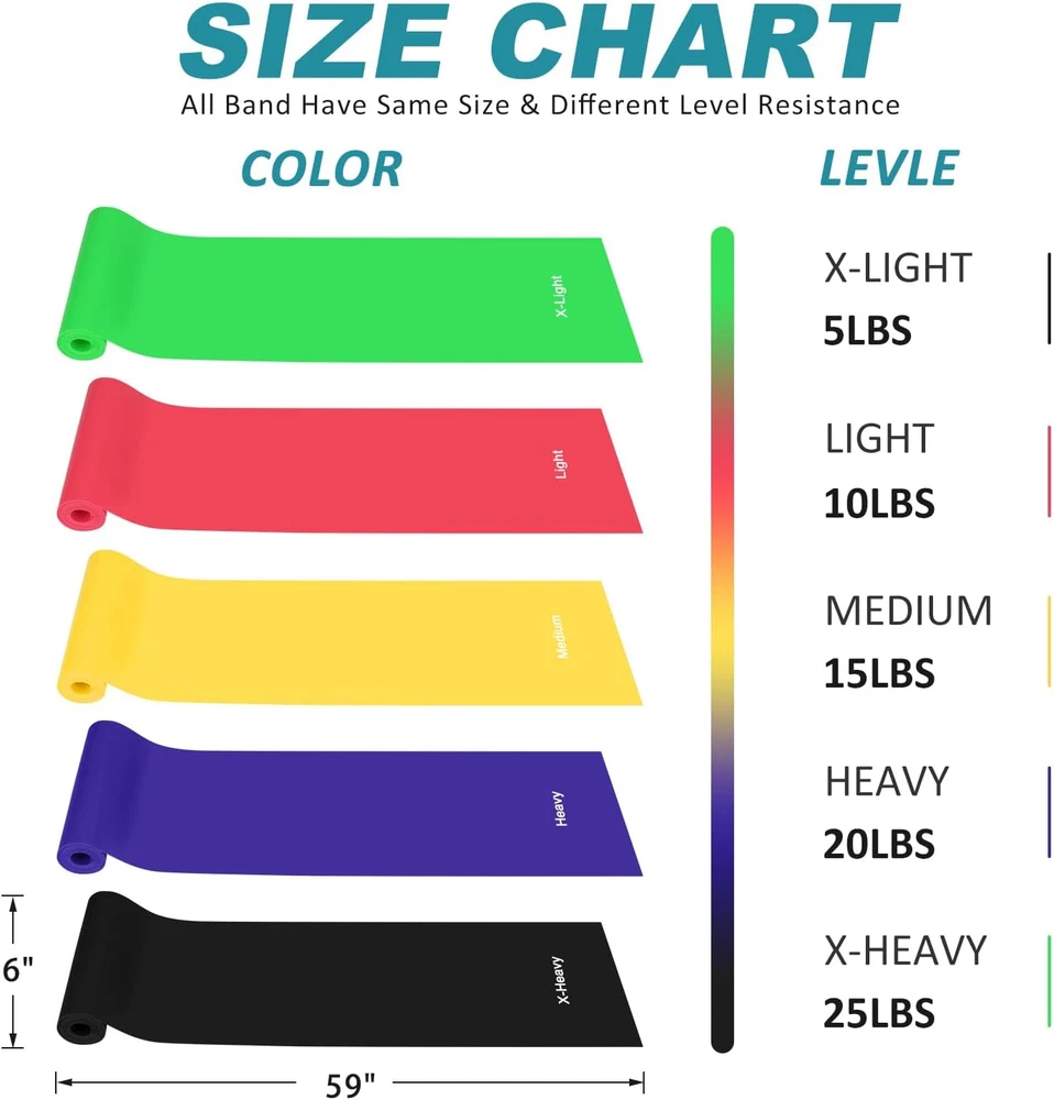 Part Number: Exercise Bands-A Suggested Users: womens Package Weight: 0.52 Kilograms Color: colorful Material: Thermoplastic Elastomer (TPE) Style: Resistance Bands,Wrap Special Feature: Lightweight,Portable Unit Count: 5.0 Count Brand: Does not apply Number of Resistance Levels: 5 Item Weight: 1.2 Pounds UPC: 744110282559 Product Dimensions: 59"L x 6"W Included Components: Handle Recommended Uses For Product: Home Sport: Strength Training/Exercise And Fitness/Pilates/Yoga Item Package Dimensions L x W x H: 7.01 x 4.8 x 1.83 inches Tension Level: 10 pounds Type: Does not apply Item Dimensions LxWxH: 59 x 6 x 0.04 inches Size: 4.9ft gtin13: 744110282559