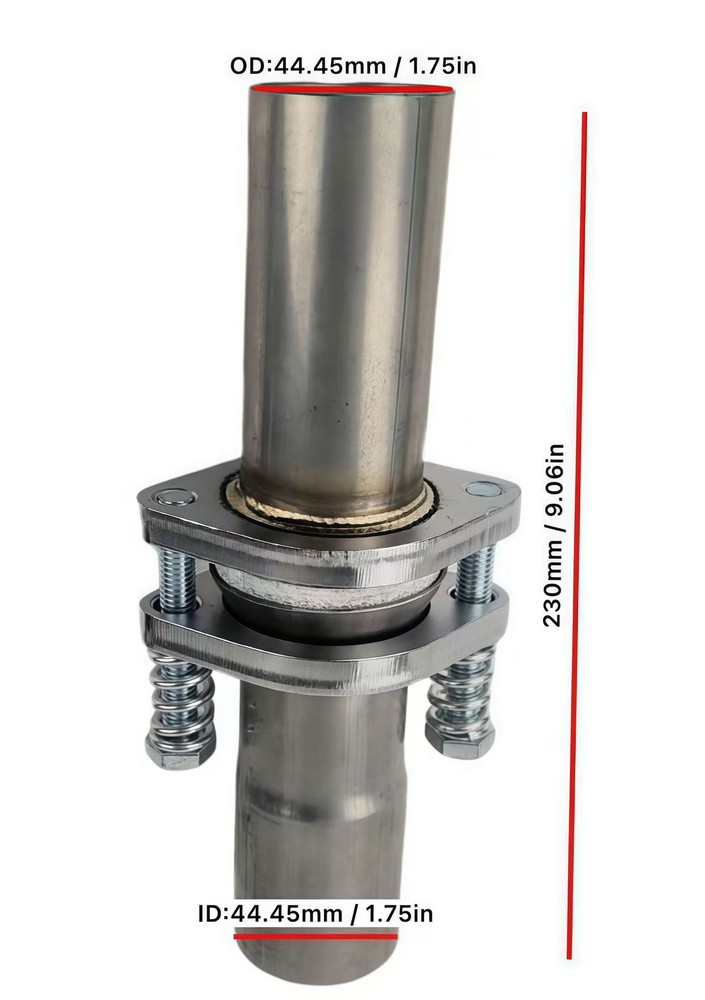 1.75" ID To 1.75" OD Universal QuickFix Exhaust Spring Bolt Flange Repair Pipe Kit SS The flanges in this kit are designed only to match up to each other, and are not guaranteed to match up with any other flange on your vehicle, or flanges in any other kit. Dimensions: Pipe ID: 1.75" Pipe OD: 1.75" Flange Material:Stainless Steel L: 9" DISCLAIMER!! We cannot be responsible for improper fitment. Regardless of the vehicles this item is advertised to fit, you are responsible for performing the proper measurements to determine fitment. Note: -We provide clear pictures, measurements where possible. Please check as much as possible to make sure the item is the one that you need. -All -dimensions are measured by hand, Please allow 0.5-1 inch difference due to manual measurement.(1inch=2.54cm). -There Are No Instructions Included In This Kit.Professional Installation Is Highly Recommende