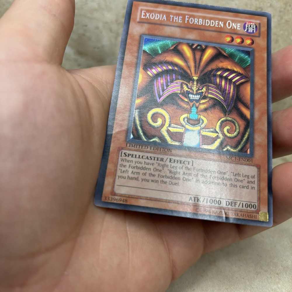 Exodia the Forbidden One MC1-EN001 Limited Yu-Gi-Oh! TCG Moderately Played The card does have flaws (please see pictures for an accurate representation of the cards condition) Comes in a penny sleeve & top loader Ships fast! Thanks for looking!