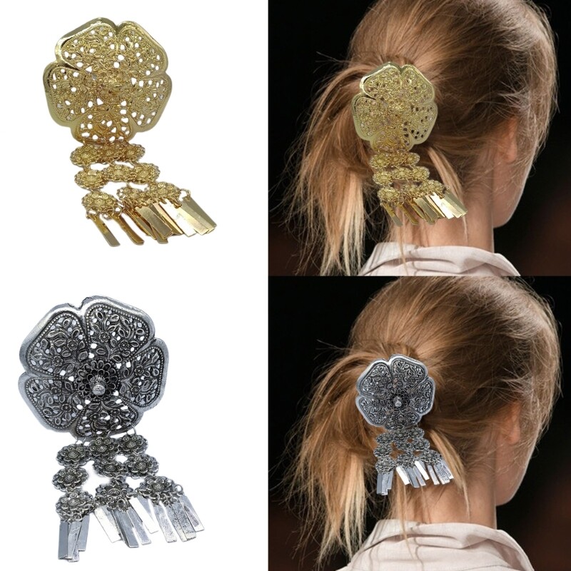 Delicate Exotic Carved Flower Shape Hairpin Bride Wedding Hair Features: Outstanding with our versatile hair clip featuring a unique flower shaped and tassels, showcasing the exotic charm. Add a touch of vintage to your hairstyle with this vintage inspired hairpin. Made from alloy, it is durable and to deformations, ensuring long lasting beauty. This hair accessory is suitable for people who appreciate the allures of exotic cultures and want to showcase their unique of for travel, vacation, and special occasions, this hair clip adds a touch of exoticism to your hairstyle, creating a relaxed Elevates your look with this hair designed to enhances your hairstyle with a touch of elegant and sophistication. Wonderful for weddings, parties, or formal party, it adds a charm and eye catching to your overall appearance. Specifications: Metal Size: As Shown As Picture Color: Antique Silver, Silver, Golden Package Includes: 1pc Carved Floral Pattern Hair note: 1: Please allow 1-2cm errors due to manual measurement, ensure that you do not mind before you order. 2: Due to the difference between different monitors, the picture may not reflect the actual color of the item.