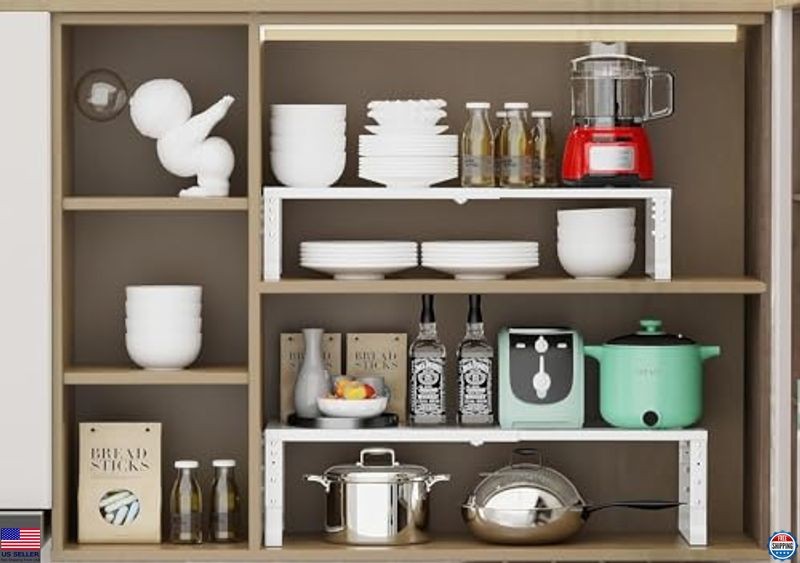 Expandable Cabinet Shelf Organizer Storage Spice Rack Shelves for Kitchen Stackable Adjustable Pantry Cupboard Bathroom Countertop Desktop(2Packs/White/Large) Description Maximize your space with the JOJOCROSS Expandable Cabinet Organizer Shelves, designed to keep your kitchen, bathroom, and office tidy and accessible. With its adjustable height and expandable length, this sturdy metal rack can hold up to 100 lbs of household items, making it perfect for spices, books, or cosmetics. Easy to install and clean, it offers a versatile solution for organizing your essentials while enhancing the aesthetic of any room. Transform clutter into order with this functional and stylish storage solution! Product reference: B0CJRBWWVD. Features ⭐【Expandable,Stackable,Adjustable】The shelves has mutil functions. The length can be extended and height can be adjusted,you can use one set only or stack two or three shelves together according to your desire to create more storage space. The measures are 10.1"D x 16.6~26.5"W x 6.1"/7.5"H. ⭐【Functional】This Cabinet Shelf can be used in many places of your house, not only good for Kitchen,Cabinet,Pantry,Cupboards, but also for bathroom,Laundry room ect. Perfect shelf to keep everything organized. Utilize the cabinet shelf organizers to maximize your storage capacity. Say Goodbye to the mess! ⭐【Sturdy Construction】The Shelf organizer made of sturdy metal with the thicken powder coated, features strong rustproof, non-slip to avoid moving or scratching,Up to 100 lbs of household items can be held. This kitchen storage rack is made to provide perfect solutions for your home. ⭐【Easy installation and clean】Comes with all necessary accessories with clear instructions. Easy to Assemble and takes just minutes. Easy to Clean. ⭐【Satisfaction Guarantee】We are always providing high quanlity products,Don't hesitate to contact us if you are not satisfied。 Using our products to start enjoying a tidy life. Shipping Free & Fast Shipping: We offer free shipping to most of the USA with a normal delivery time of 3-7 days. However, due to the current situation, additional delivery time (up to 3 weeks) may be required for some items. Alternative Carriers: We may use alternative carriers (e.g., USPS, FedEx, UPS) to ensure your package arrives safely and on time. Due to the use of multiple carriers, we are unable to provide a tracking number automatically. Handling Time: Orders are processed and shipped within 1-2 business days of receiving cleared payment. Shipping Restrictions: Shipping to Alaska, Hawaii, Puerto Rico, Guam, and other US territories may incur shipping charges or delivery restrictions. Please contact us before ordering, or your order can be refunded/cancelled. State Restrictions: Certain items may not be shipped to California due to state regulations. Contact for Tracking Updates: If you require tracking updates or have any concerns about the delivery of your order, please feel free to contact us, and we will be happy to assist you. Return Policy 30-Day Hassle-Free Returns: If you are not completely satisfied with your purchase, you can return the item for free within 30 days of receiving it for a full refund or exchange. Easy Return Process: Contact us, and we will provide you with a prepaid return shipping label and detailed instructions. No Restocking Fee: There are no restocking fees for returns. However, the buyer is responsible for return shipping costs if the return is not due to a seller's error. Refund Processing: Refunds will be processed within 1 business day of receiving the returned item in its original condition.
