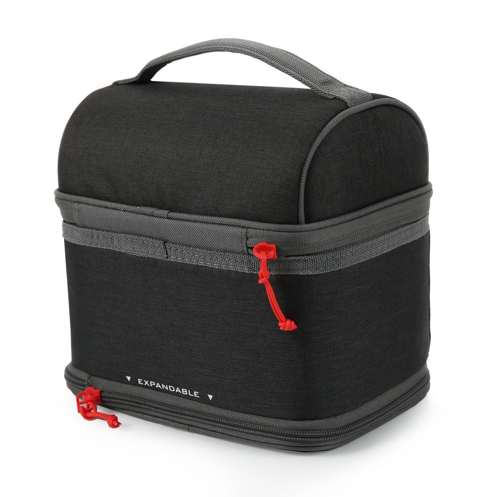The Expandable Secret Bucket features two large compartments separated by a transparent interior divider and includes a high performance ice pack that enhances cold retention. If you want to carry taller items, just unzip the divider for more vertical space. The bucket also has an expandable bottom compartment for those days when you want to bring even more food. The interior of the bucket has high density thermal insulation to keep food and drinks cool and fresh, a leak proof bottom compartment and Ultra Safe easy clean lining with Microban to help protect against bacterial odors and stains. 2 Compartments separate drinks from food, hard from soft High density thermal insulation keeps contents cold Zippered, transparent compartment divider unzips to provide space for taller items Expandable bottom compartment for those days when you want to bring more food Leak proof bottom compartment means no more worries about food or liquids seeping out from the bottom of the pack Ultra Safe easy clean lining with Microban to help protect against bacterial odors and stains and make the lining easier to clean Carry handle High performance ice pack enhances cold retention Reusable lunch box